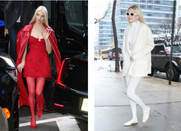 وفي فبراير ، شقت عارضة الأزياء جيجي حديد طريقها عبر نيويورك مرتدية لباس ضيق أبيض مع سترة بيضاء متناسقة ، وحذاء ماري جين ، وحتى نظارات شمسية بيضاء. جاء ذلك بعد ظهور لا يُفوَّت من نجمة الغلاف البريطانية السابقة لمجلة فوج أنيا تايلور جوي ، التي ظهرت بشكل لا يُنسى مرتدية فستان قصير أحمر ، مُصمم بمعطف أحمر شديد اللمعان ، وكعب أحمر ، ونعم ، جوارب ضيقة حمراء.