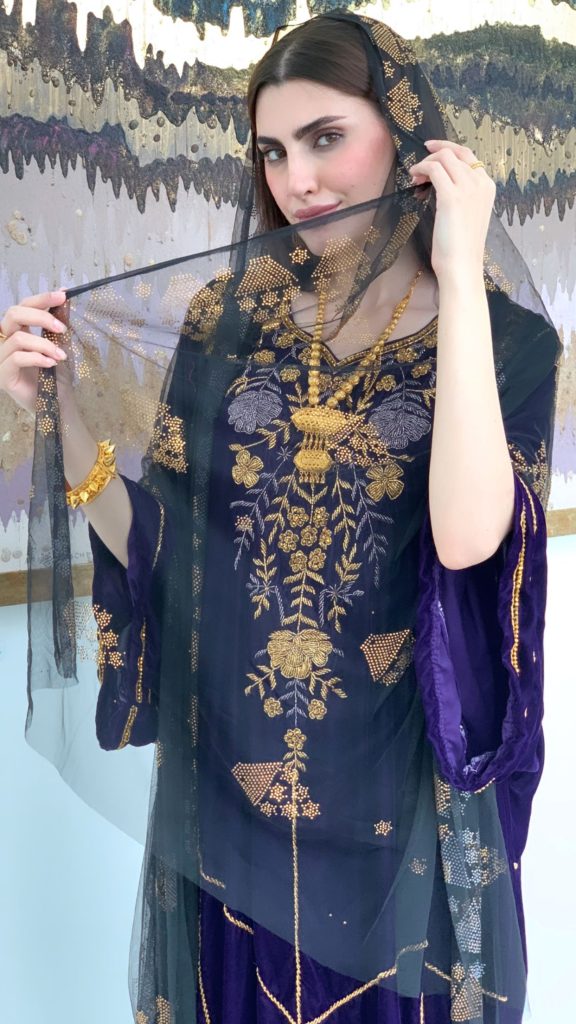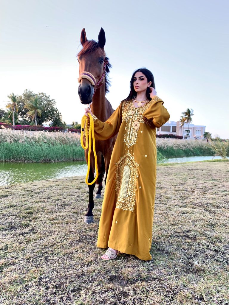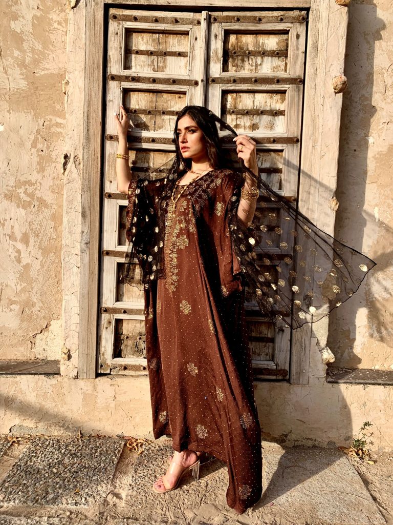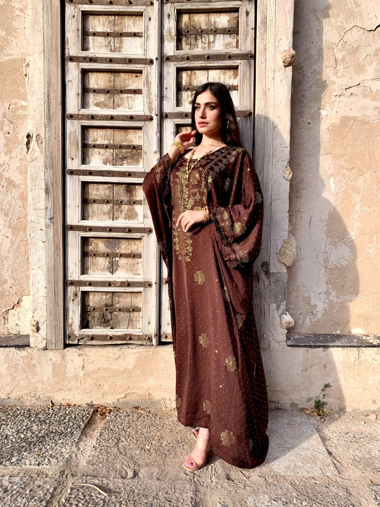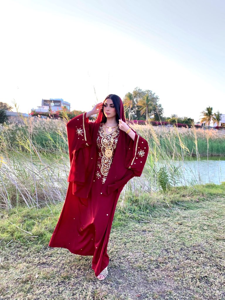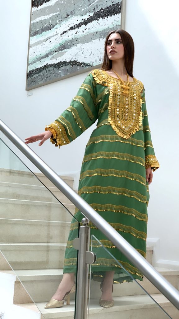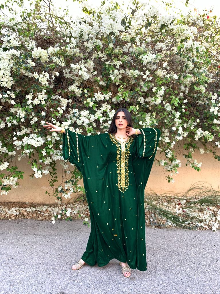 تتزين التصاميم بالفصوص اللامعة والشك اليدوي والتطريز الذي يظهر جمالية الزي وتتزين به القطع في الصدر وعلى أطراف الأكمام. أما الألوان فتتنوع بين الأحمر والأخضر والأصفر والبني بدرجات مبهجة مليئة بالحياة اختاري ما يناسبك منها.
