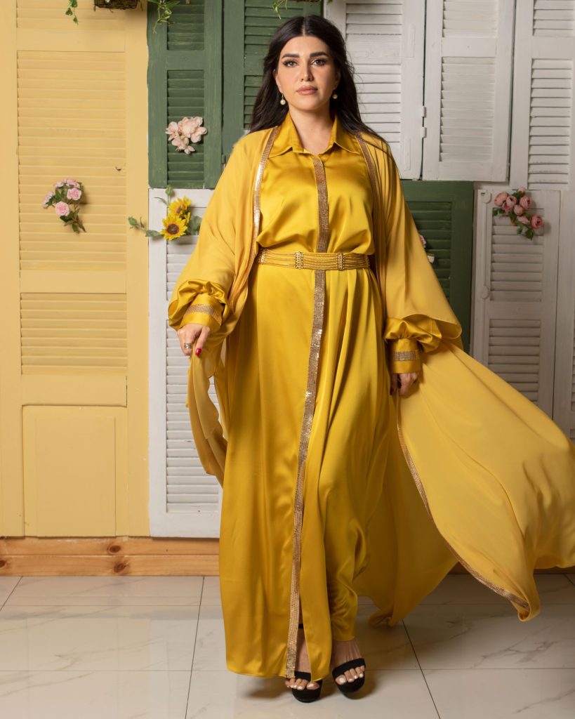 أما الألوان فاختارت المصممة درجات الألوان الصيفية المنعشة كالأصفر والأخضر والبيج والأسود الأنيق لإطلالة أكثر تميزا فيما تأتي بعض التصاميم مزينة بالورود المبهجة.