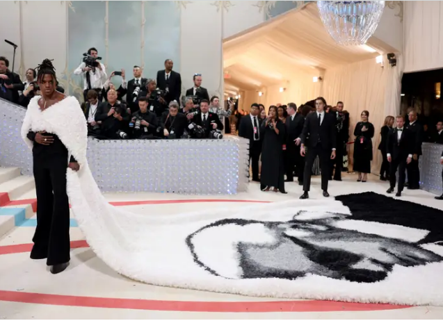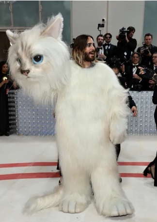 ظهر ليتو على سجادة ميت جالا مرتديًا بدلة قطة عملاقة ، مما أثار تسلية النجوم الحاضرين.