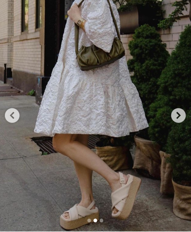 واحدة من أكبر صيحات الصنادل هذا العام هي صنادل معدة بالكعب السميك “، تقول إيباغوا. وبينما كانت صنادل بالكعب السميك تعتبر قطعة أساسية منذ سنوات، إلا أن هذا الموسم يجد لها نوعاً جديداً من الأهمية بفضل النعل غير المتناظر والسميك. ابحث عن خيارات الأحذية التي تحتوي على نسيج جذاب مثل الرافيا لتجمع بين اتجاهين في نظرة واحدة.