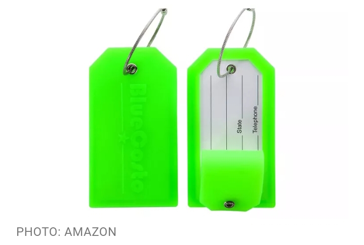 حتى لو أنك لا تفضلين الألوان الزاهية عادةً، فكري في اختيار علامة ملونة بشكل زاهي أو مزينة بنمط يميّز حقيبتك السوداء عن العشرات من الحقائب الأخرى على حزام الحقائب في المطار. ويجب أن تكون متينة بما فيه الكفاية لتبقى مثبتة بحقيبتك وتتحمل التلف الناجم عن السوائل والطقس والمعاملة الخشنة.