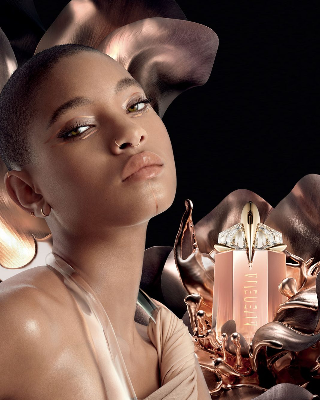 تقوم ويلو سميث بتقديم حملة الإعلان الخاصة بعطر الـ”أو دو بارفان” الجديد، مستحضرة الرائحة الجريئة التي تدفع بجرأة نحو رؤية موغلر للجيل الجديد من الأنوثة. وبينما يتم وضع العطر في زجاجة من الذهب الوردي اللامع، تظهر سميث بإطلالة ذهبية وردية ساحرة في الحملة الإعلانية.