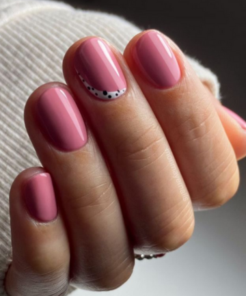 يعتمد على اللون الوردي الأنثوي قليلاً مع شريط منقط بالأسود يجعل فكرة تصميم الأظافر هذه جذابة للغاية وذات طابع قديم.