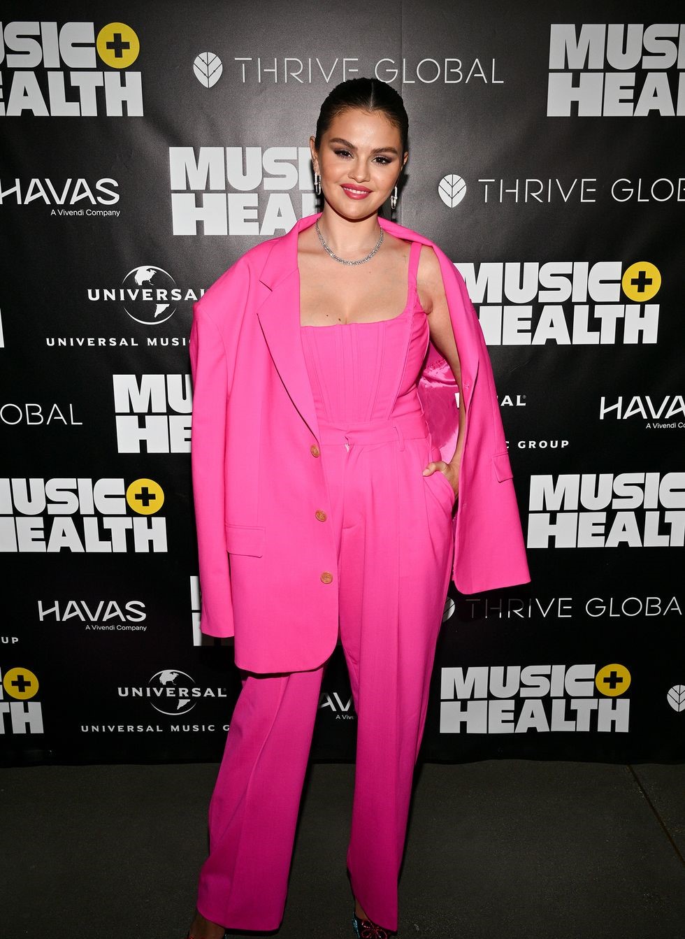 حضرت المغنية والممثلة سيلينا غوميز قمة الموسيقى والصحة في فندق ويست هوليوود مؤخرا، حيث بدت ساحرة بكامل ثيابها الوردية.