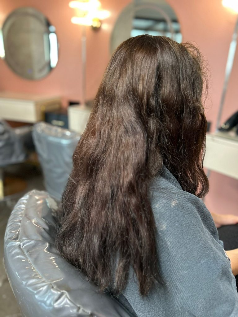 قبل البدء في عملية تغيير لون الشعر، قام الخبراء في المركز بإجراء تقييم دقيق لشعري وبشرتي لضمان أن اللون الجديد سيتناسب تمامًا مع ملامح وجهي وستبدو النتيجة طبيعية. ثم، بدأوا بعملية تفتيح الشعر بعناية باستخدام منتجات ذات جودة عالية ومكونات طبيعية.