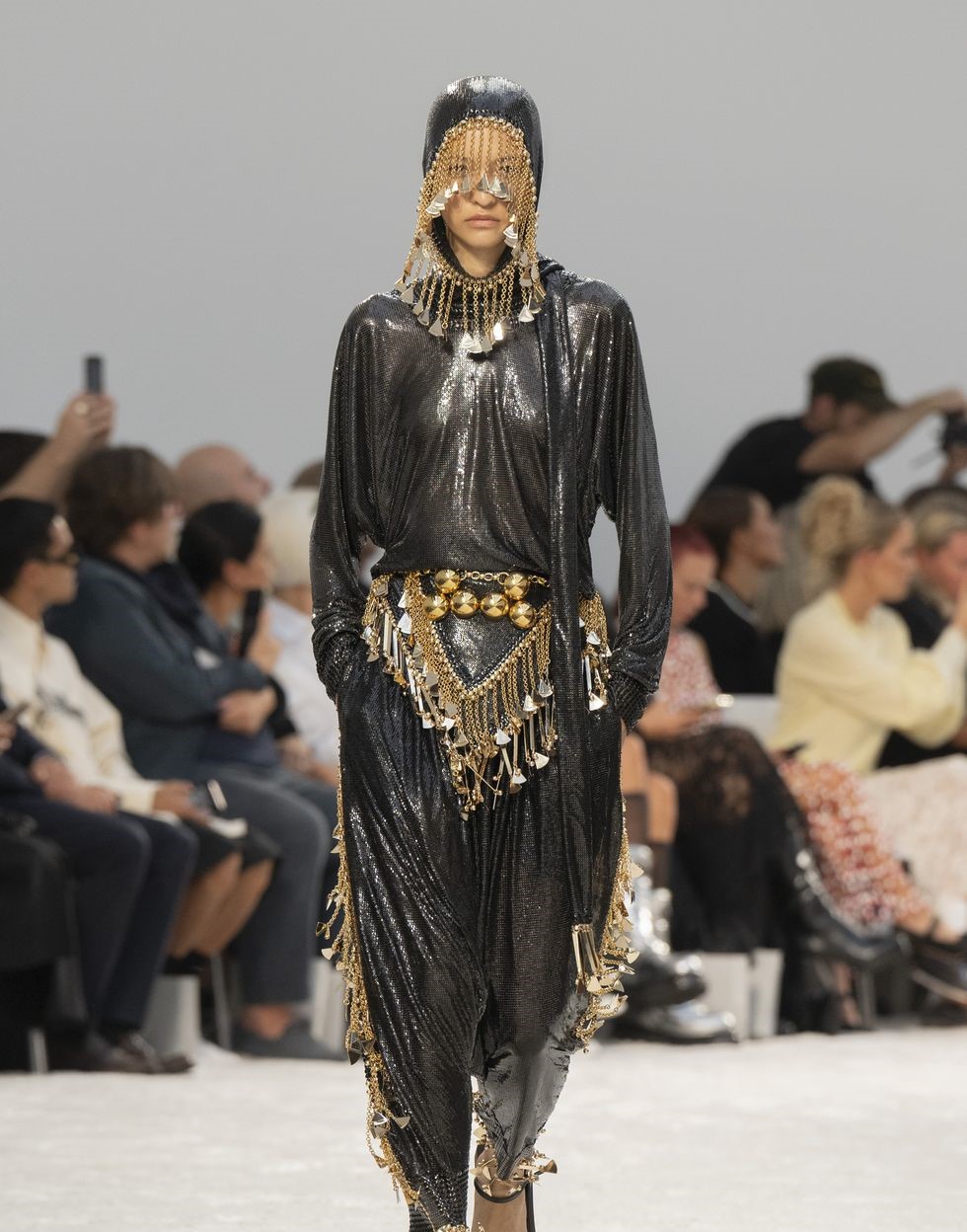 قدمت مصممة دار كلوي “غابرييلا هيرست” أداءً رائعًا. تنبعث من مجموعتها كل الأناقة والثقة والأنوثة التي تميز الدار الفرنسية الأيقونية، ولكنها بقيت أيضًا مخلصة للجمالية والقيم التي تميزها كمصممة. تم التلميح برقة إلى تشجيعها على الاستدامة من خلال موضوع نباتي، حيث ترجمت هذه الفكرة إلى تجمعات من الكشكشات تنساب كالكرمات وألواح الشيفون المتدلية من صدور العارضات كأزهار متفتحة. ومع لوحة ألوان تقريبًا سوداء وبيضاء بالكامل، اللون الأصفر والمرجاني والفضي اللامع يظهر على فترات، ركزت على التصميمات الابتكارية ولكنها قابلة للارتداء التي أصبحت هيرست متقنة لها.