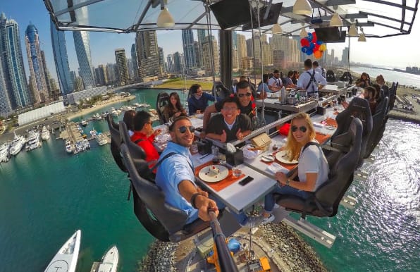 فهناك حزام أمان ويتم دوران الطاولة بأكملها، لذا ستحصل على مناظر بزاوية 360 درجة لمدينة دبي المتلألئة. وتبلغ تكلفة العشاء 191 دولاراً.