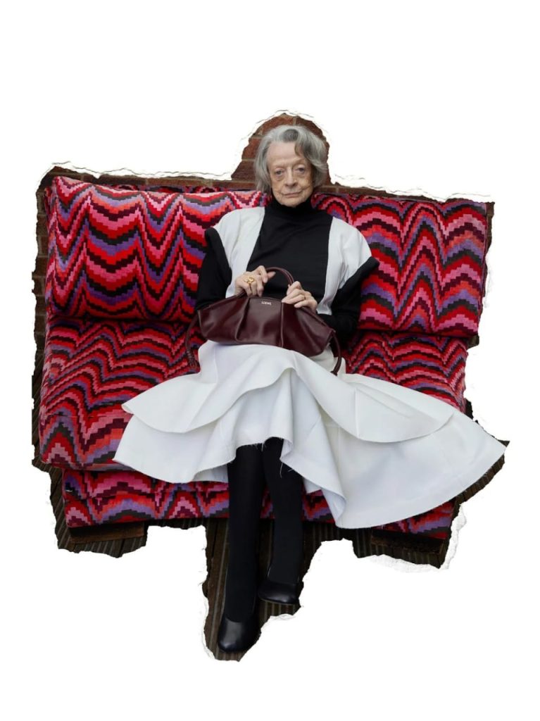 في عمرها البالغ الثامنة والثمانين، تُشكّل الممثلة البريطانية إطلالة مرحة ومنعشة أمام عدسة يورغن تيلر وتقدم عروضاً رائعة، حيث ترتدي مجموعة Loewe الجديدة لمصممها جوناثان أندرسون. وتظهر الممثلة البريطانية طوال الحملة الإعلانية وهي تتألق في أحدث مجموعة لويفي من جي دبليو أندرسون، وترتدي ملابس من تصميم بنجامين برونو.