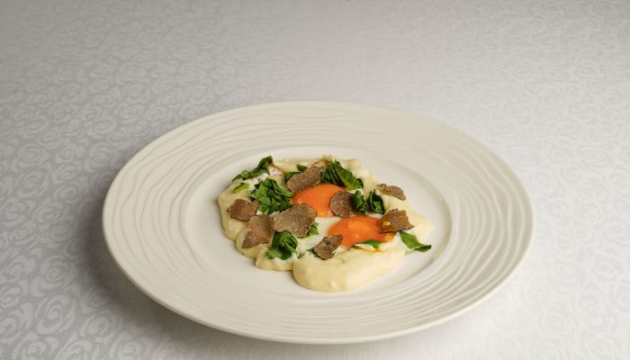 ضمن القائمة، يمكن للضيوف تذوق طبق كارباتشيو الذي يتكون من لحم البقر وكروكيت البارميجانو والجرجير وصلصة فطر الترافل الأسود المثيرة وطبق البيض المقلي المصنوع من بيض بركاء، وتاجليوني مع صفار البيض في صلصة الزبدة، و”لا تاجلياتا دي مانزو” مع فطر بورسيني والعصيدة المصنوعة من دقيق الذرة.