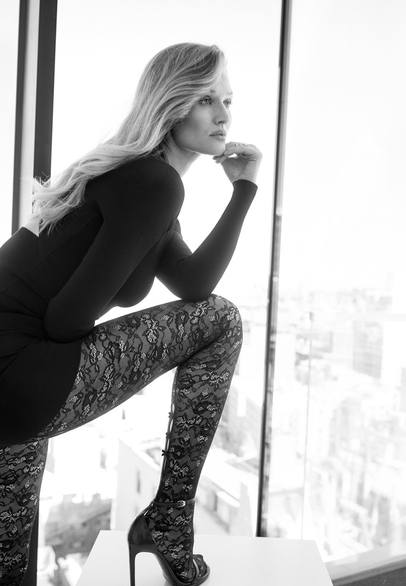 خطفت عارضة الأزياء توني جارن الأضواء في عرض الجوارب الشفافة الجديدة من كالزيدونيا لمجموعة 2023.