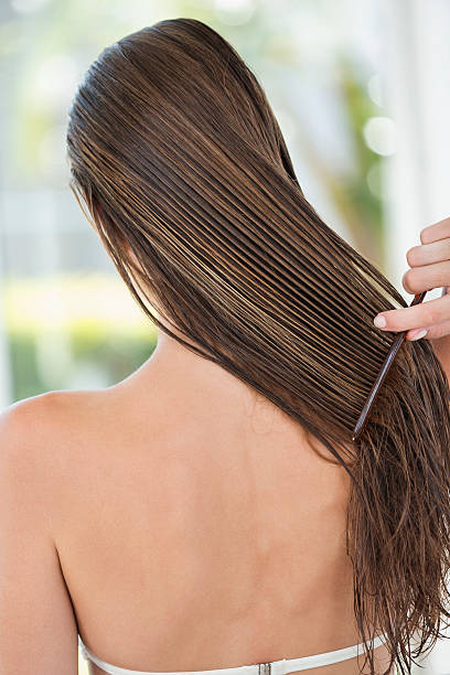 – ضعي بقية الزيت على شعرك ومشّطيه حتى تتشبع الخصلات بالكامل. ثم لفّي الشعر بمنشفة أو قبعة الدش.