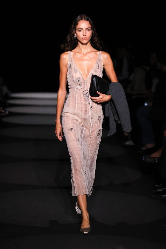 يظهر الشفاف بجميع أشكاله من التنانير الشيفون إلى الفساتين، سواء كان ذلك بشكل خفيف أو شفافاً تماماً مع قطعة داخلية بألوان متباينة.