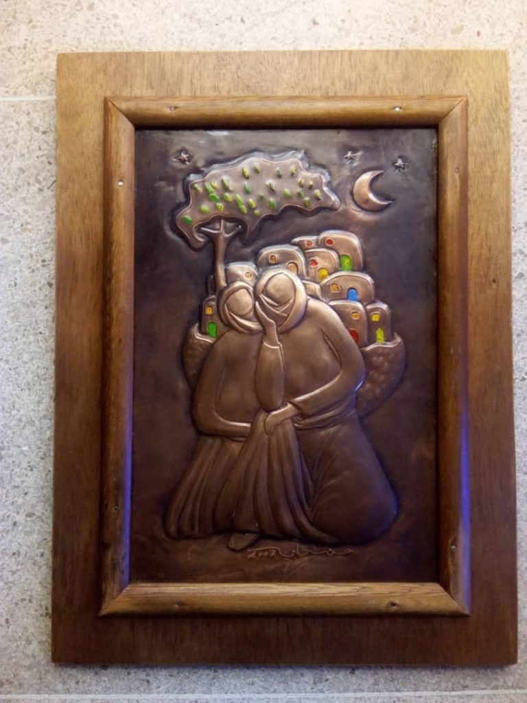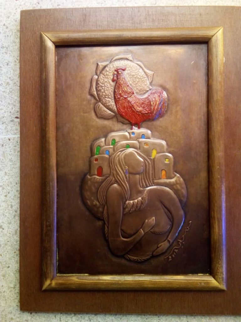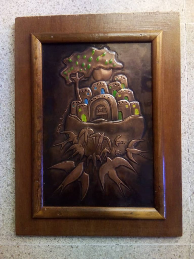 و يتربع عمل فني ضخم في مديرية بريد اللاذقية بطول 3 متر تقريبا يجسد الحياة اليومية في مدينة أوغاريت من زراعة وتربية حيوانات.