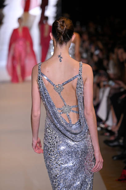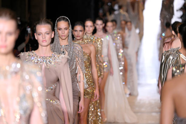 أما البريق فقد كان حاضرا في تصاميم مراد من خلال الأحجار الكريمة والسلاسل والزخارف الفاخرة التي ازدانت بها  القطع، مما أعطى لمسة استثنائية من الأناقة.