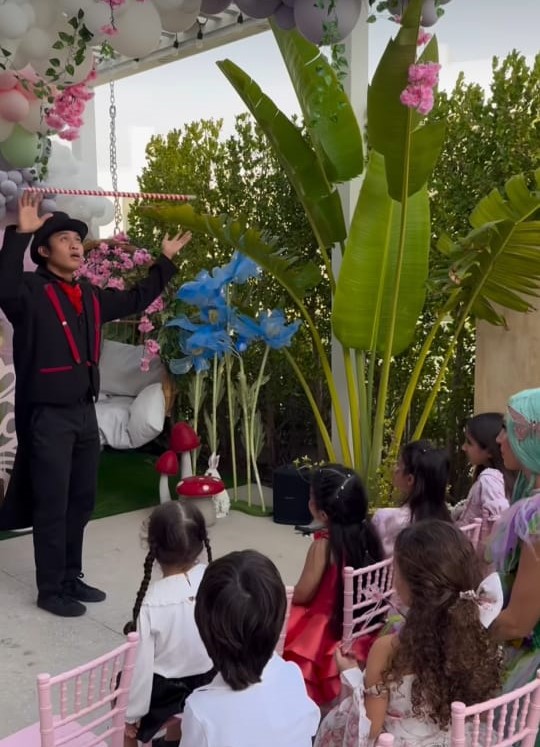 نشرت روان عدة فيديوهات عبر خاصية “الستوري” تُظهر مكان الاحتفال المزين بورود ملونة بالإضافة إلى قالب حلوى يتكون من 3 طوابق، يمثل منزلًا خياليًا يشبه منازل أفلام الكرتون. وكان القالب مزينًا بمنزل صغير على شكل حبة فطر، يضفي جوًا من السحر والفرح على الاحتفال بعيد الميلاد.