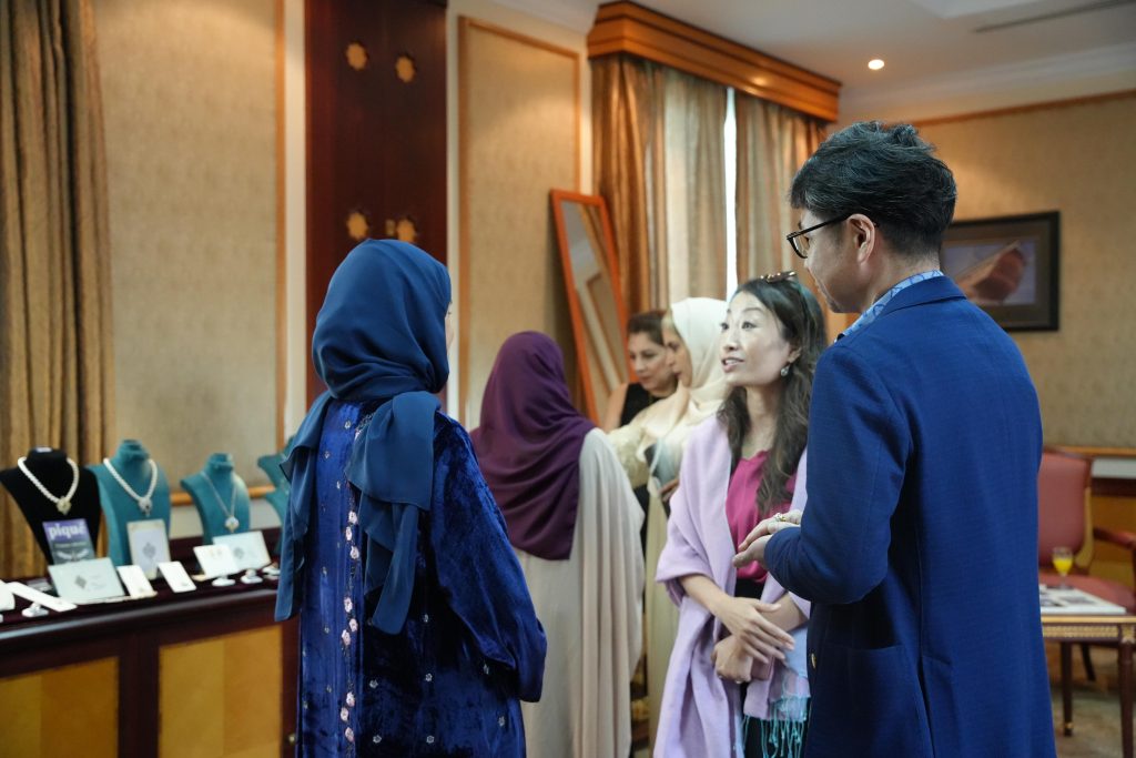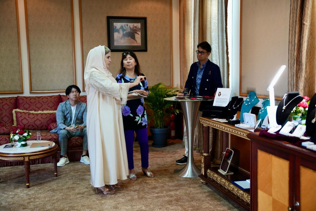 في أمسية ساحرة ومليئة ببريق الألماس والذهب، نظمت الفاضلة عبير عبدالرؤوف عايشة حفل شاي خاص في مقر النادي الدبلوماسي، يتناول فن المجوهرات اليابانية الراقية والفريدة. حضر هذا الحدث الذي يجمع بين فخامة المجوهرات وروعة التصميم، حشد من محبات المجوهرات الراقية اللواتي يترقبن دائماً أحدث صيحات هذا المجال الفني الرفيع.