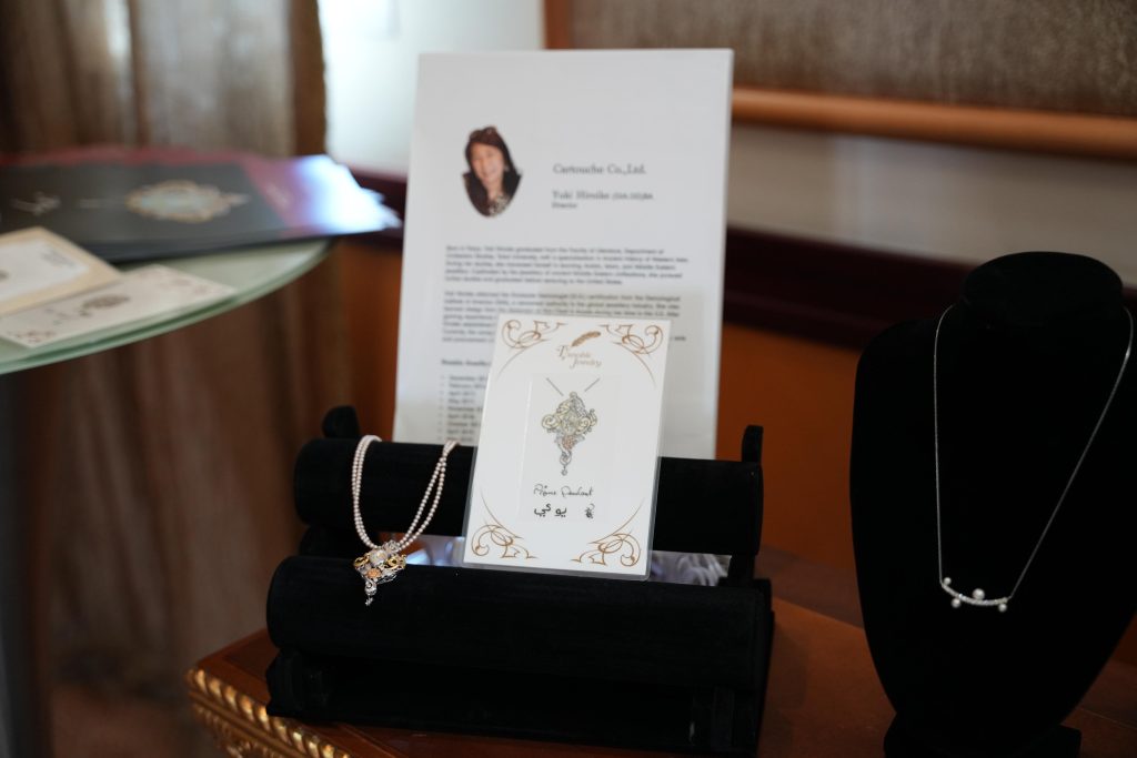 تم خلال الحفل التعريف بالمصممين اليابانيين البارعين يوكي هيروكي وتيتسويا ناكانو، وتسليط الضوء على تصاميمهم الفريدة من نوعها في عالم المجوهرات الراقية، واستمتعت الحاضرات بفرصة فريدة لاستكشاف عالم الفخامة والجمال الذي يميز تصاميمهما ، واستعراض تشكيلة مميزة من المجوهرات التي تعكس ذوقًا رفيعًا واهتمامًا بأدق التفاصيل.