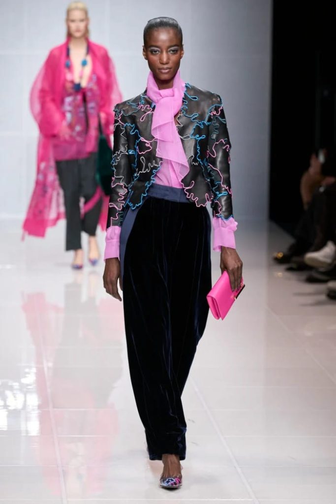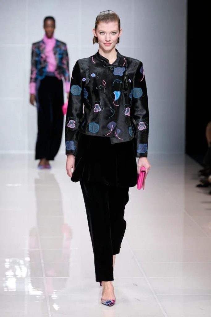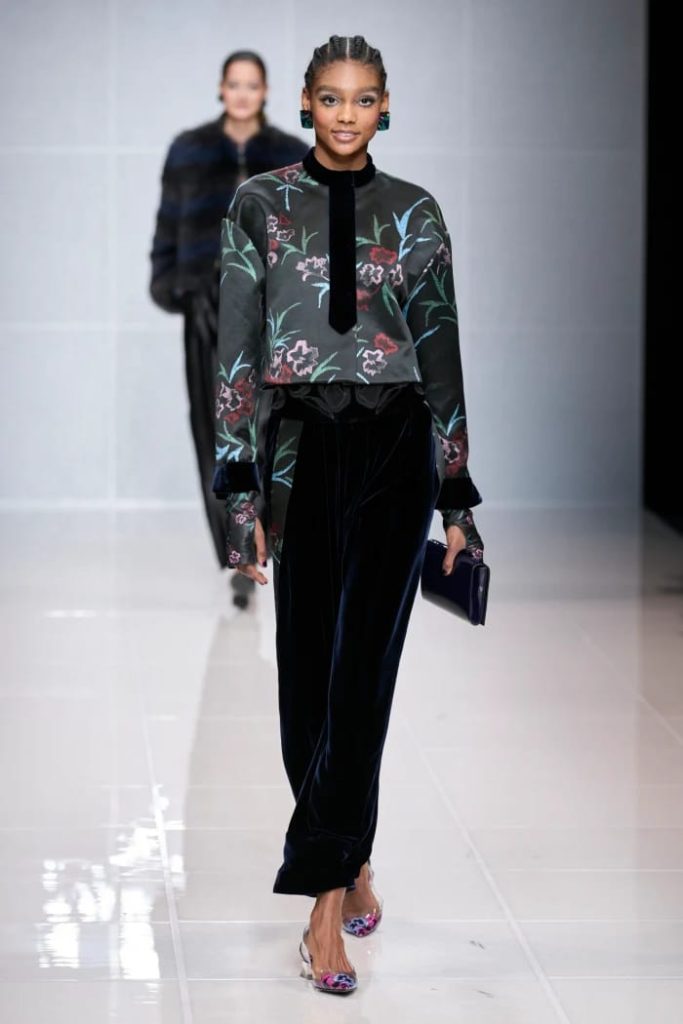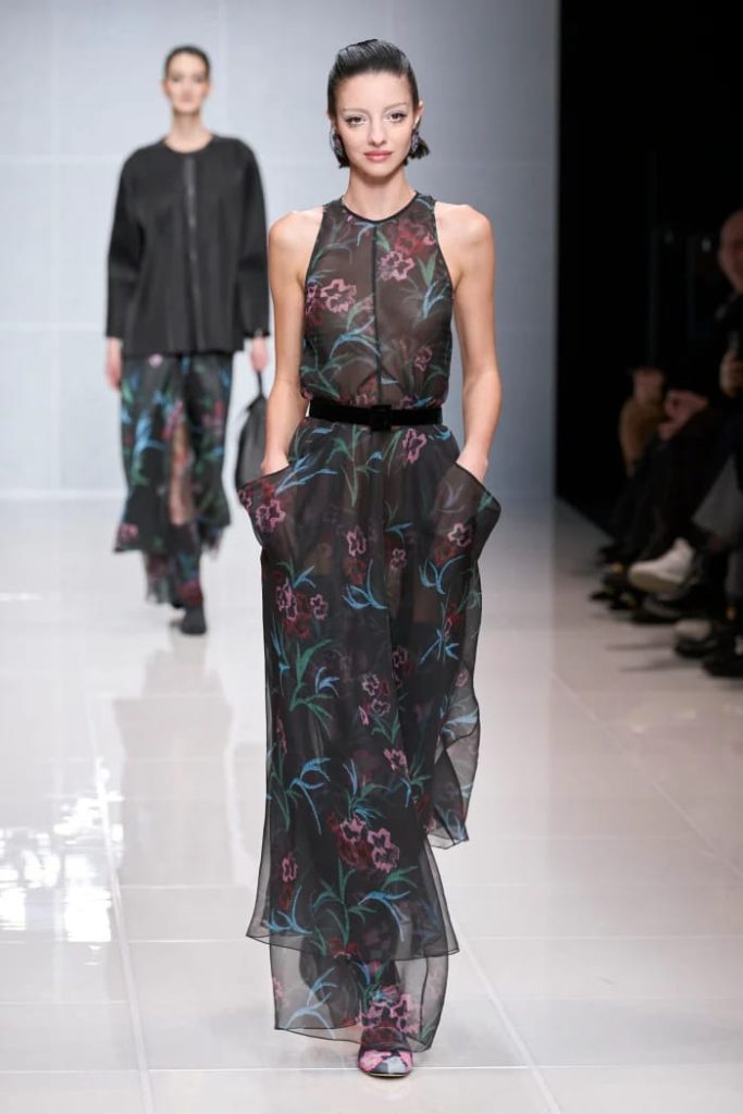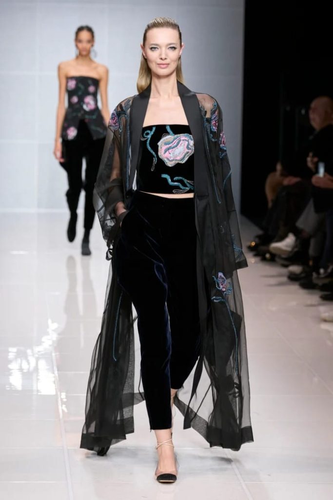 وتضمّنت مجموعة ارماني لخريف 2024 تحوّلاً أنيقاً نحو الخط غير الرسمي حيث عرضت الملابس النهارية والرياضية والسترات، وتصوّر تصاميمها الطبعات وزخارف الزهور الشتوية بأسلوب ناعم وراقي.