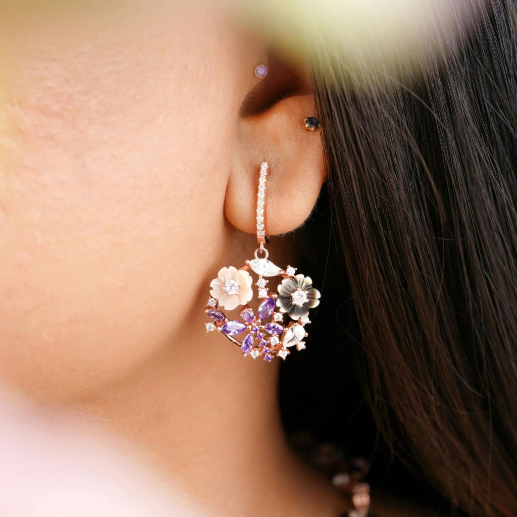 إذا كنت ترغبي في إضافة لمسة من الطبيعة إلى مظهرك، فابحثي عن أقراط زهرية. يعكس هذا النمط رومانسيتك ويضيف سحر أنثوي لأي زي. اختاري تصميم من اللؤلؤ أو الأحجار الكريمة فهي خيار مثالي لنمط الزهور.