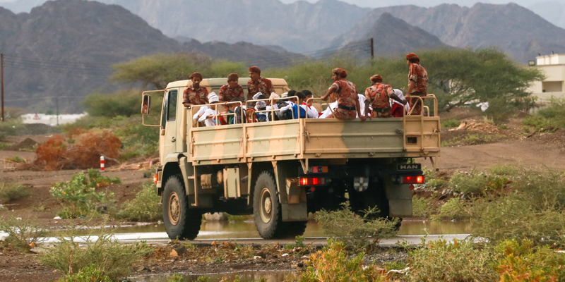 هذا وقامت وحدات من الجيش السلطاني العُماني ممثلة في كتيبة الصحراء اليوم بتوفير متطلبات النقل لعدد من طلبة المدارس وأعضاء الهيئتين التدريسية والإدارية في محافظة شمال الشرقية جراء الحالة الجوية (منخفض المطير)،