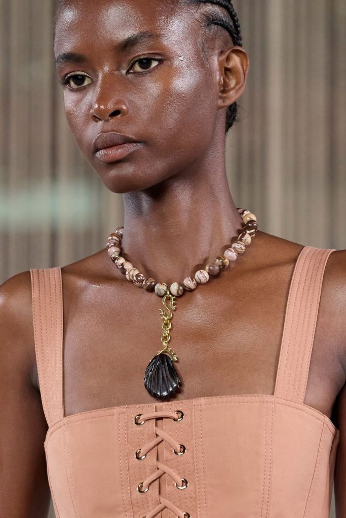 تركيبة الألوان السوداء والذهبية هي عنصر أساسي في المجوهرات، لكنها تكتسب ميزة خاصة في فصل الصيف حيث تعود الأشكال الجريئة إلى الظهور. هذا الاتجاه أنيق وفخم ويمكن ارتداؤه سواء نهاراً أو ليلاً.