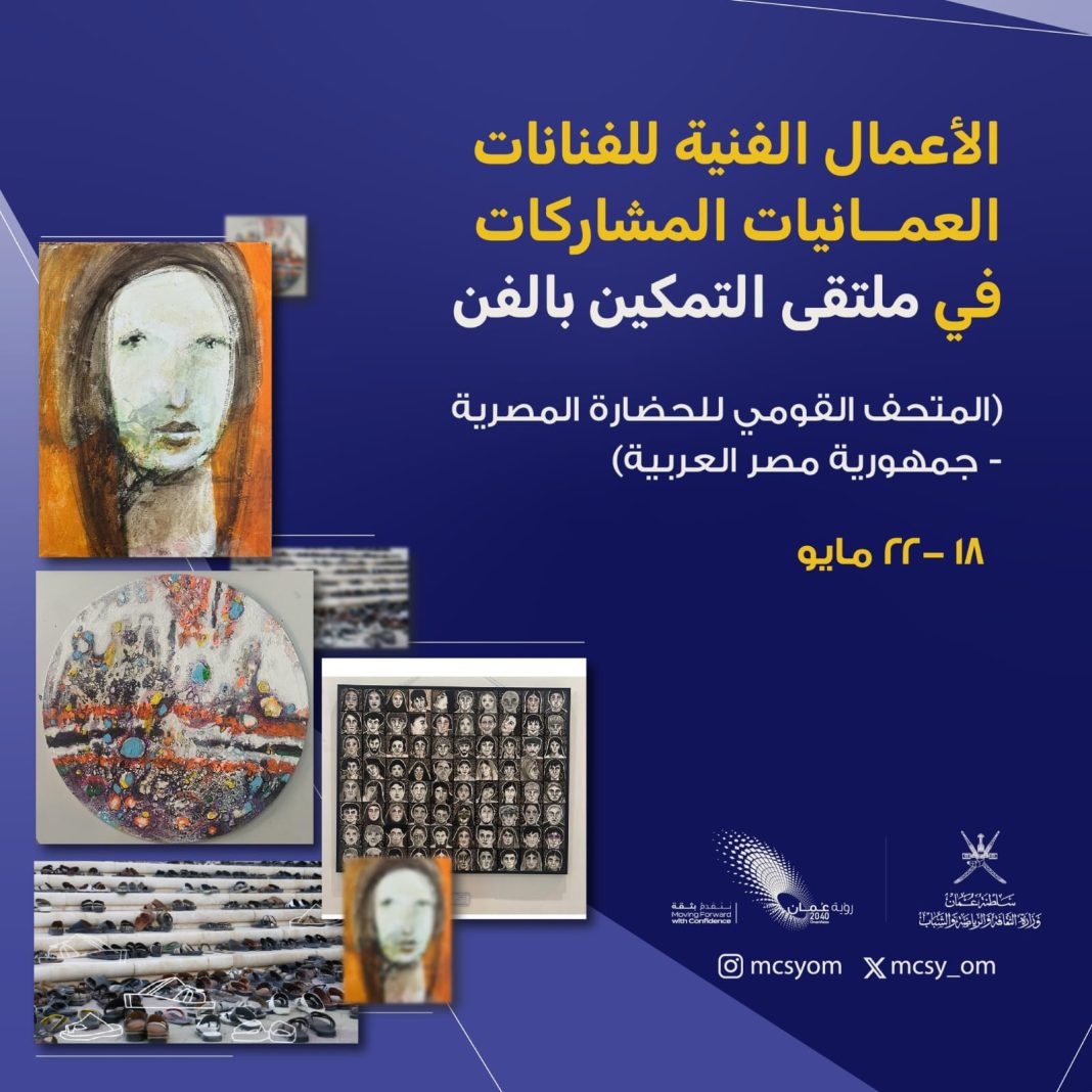 تشارك 5 فنانات تشكيليات رائدات يمثلن الفن العُماني بأبهى صوره في ملتقى التمكين بالفن في دورته الثانية بالقاهرة، في المتحف القومي للحضارة المصرية؛ وهنّ: فخرية اليحيائية، نائلة المعمرية، حفصة التميمية، ندى الرويشدية، ومريم الوهيبية.