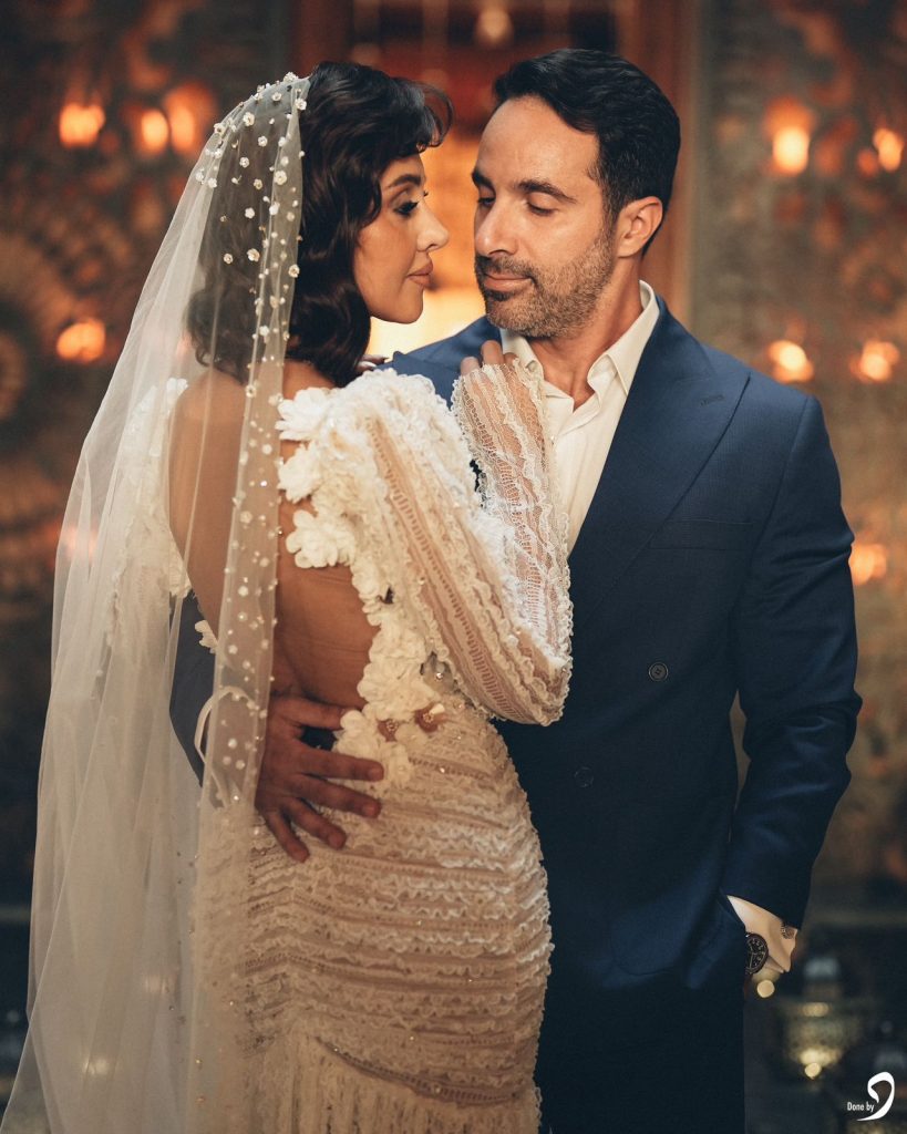 احتفلت الفنانة المصرية “ياسمين رئيس” بحفل زفافها على رجل الأعمال ” أحمد عبد العزيز”. وتناقلت وسائل التواصل الاجتماعي الصور الأولى للعروسين، وظهرت رئيس فيهما بإطلالة بسيطة وأنيقة حيث ارتدت فستان زفاف طويل ومكشوف الظهر من تصميم نور عزازي، ومكياج قزمان، وشعر جوني.