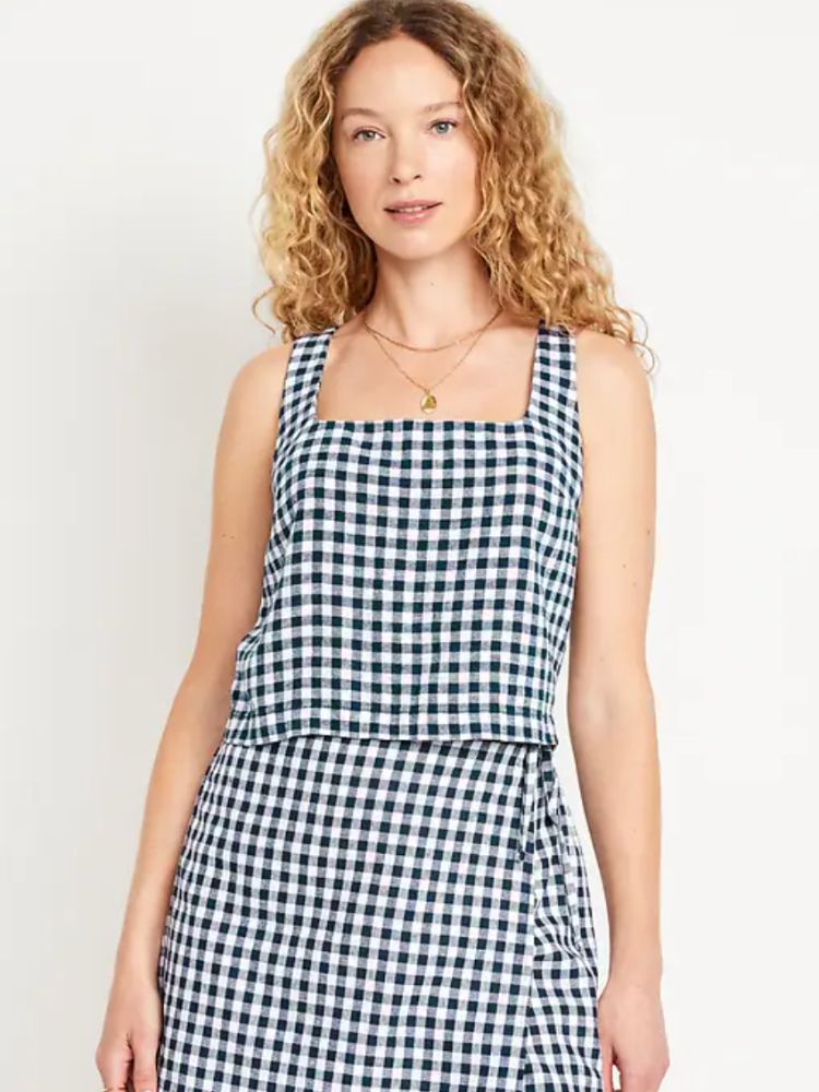 يمكنك تنسيق إطلالة قماش الجينجهام من الرأس إلى القدمين. هذا النمط صغير الحجم بطرق متنوعة. جرّبي خلط قماش الجينجهام بألوان مختلفة. مع تنسيق الإكسسوارات وقطع طبقات الملابس بنفس لون قاعدة القمة، مما يوفر التناغم في جميع أنحاء الإطلالة.