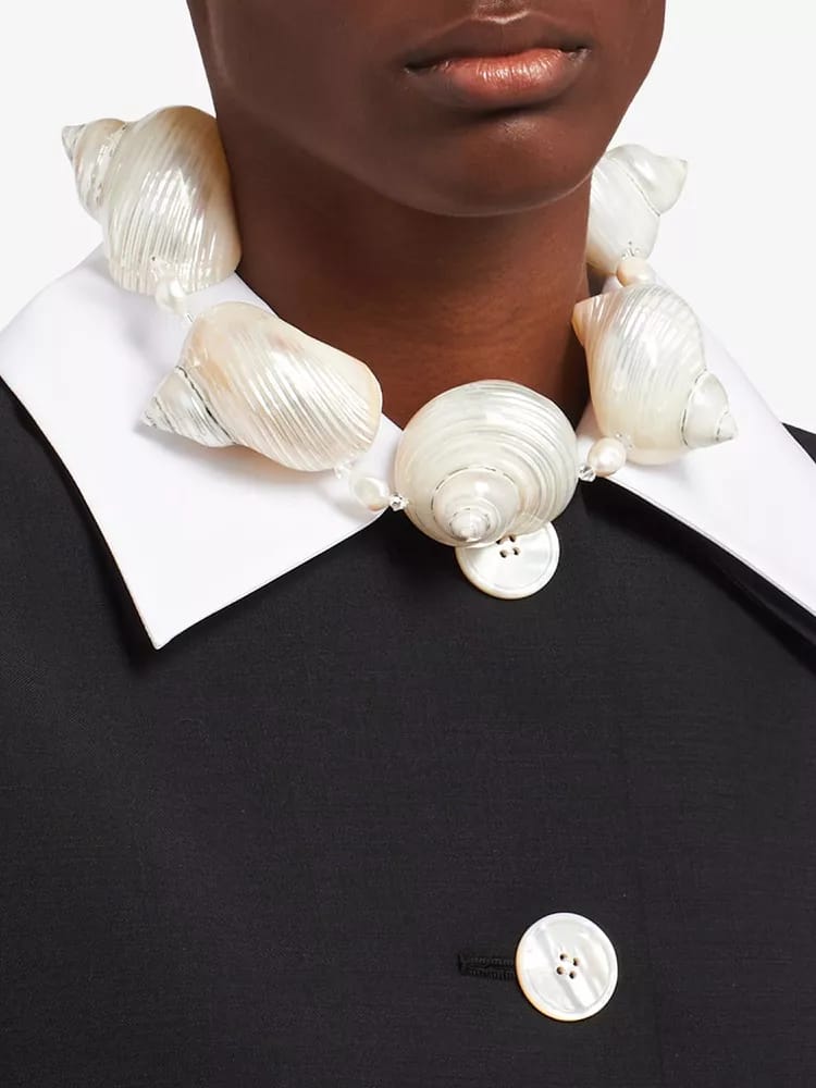 كانت الزخارف البحرية منتشرة في عروض الأزياء هذا الموسم، من الكركند والأسماك إلى الشعاب المرجانية والأمواج. ومع ذلك، إحدى الطرق السهلة لترجمة هذا الاتجاه البحري إلى الحياة اليومية هي من خلال الأصداف البحرية الأنيقة. تُعتبر الأصداف البحرية عنصرًا أساسيًا في موضة الصيف منذ فترة طويلة، وغالبًا ما تُرى في تزيين الملابس والإكسسوارات. ولكن عندما يتعلق الأمر بالمجوهرات، قد يكون من الصعب تحقيق التوازن بين أسلوب “حورية البحر الصغيرة” وإطلالة أنيقة. هذا الموسم، لا داعي للقلق بشأن الظهور كجزء من “عالمهم” لأن المجوهرات بشكل الأصداف تتصدر المشهد، لا سيما في الأشكال المبتكرة والمعادن اللامعة والأحجام الكبيرة التي تبدو أكثر أناقة وجاذبية من كونها تشبه الكائنات البحرية.