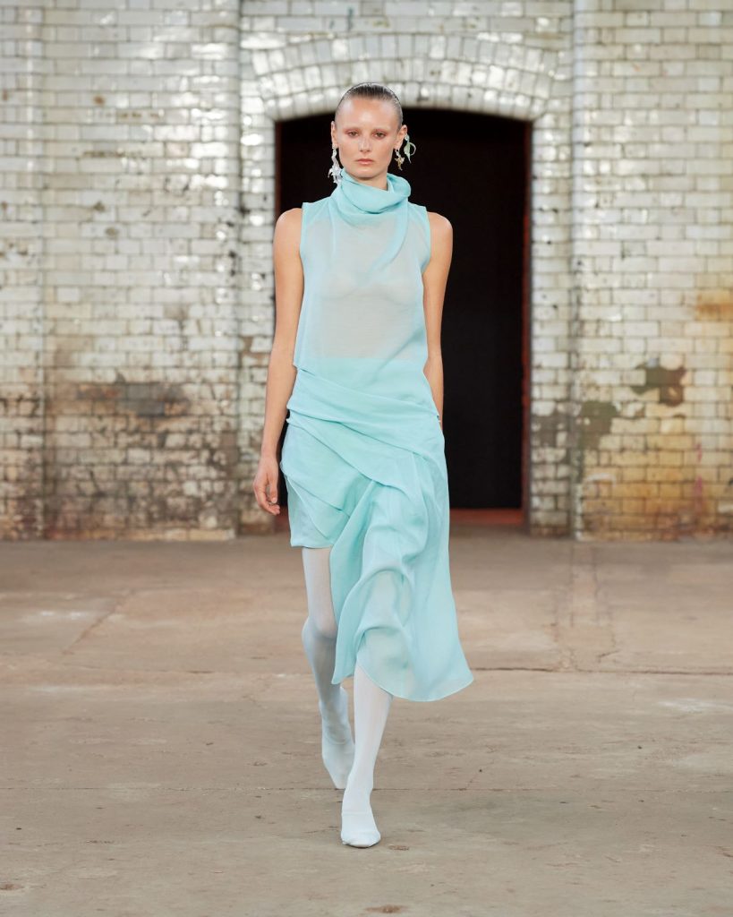 أقيم العرض في محطة وابينغ للكهرباء في حي تاور هامليتس بشرق لندن. واستوحت التصاميم من سلسلة “عندما تسقط المعالم الأثرية” لأولوجيمي، حيث دمجت بين عناصر من الهياكل القديمة والأشكال الحديثة، مما يعكس مفهوم إعادة الاستخدام أو “سبوليا”.