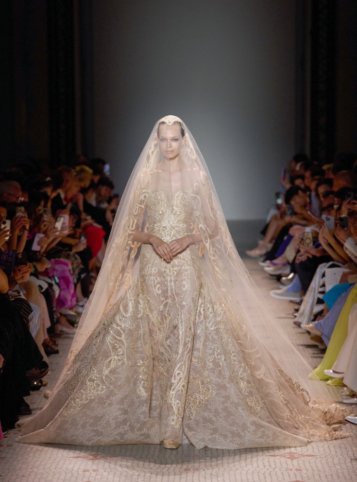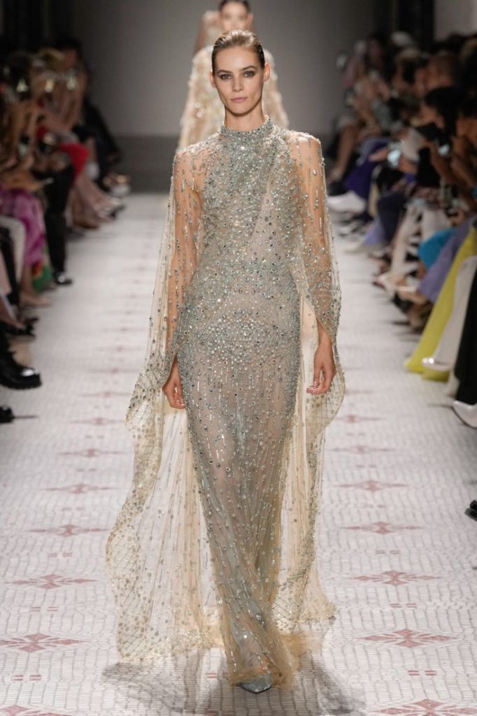 تألقت مجموعة إيلي صعب الراقية لخريف وشتاء 2024/2025 بلحن يجمع بين الغموض والفخامة، محملة بسحر خاص يداعب الأحاسيس ويأسر الأبصار. تجسد المجموعة جمالاً أثيرياً ينقلنا برفق إلى عوالم سريالية مشبعة بالخيال، مستوحاة من فن “الكوكلوما” الخالد.