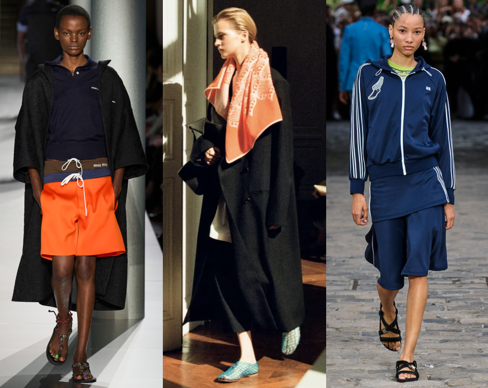 كانت الإطلالات الرياضية لها لحظتها الخاصة في عروض ربيع ٢٠٢٤ مثل عروض ميو ميو وأديداس. من الجاكيت رياضي والعديد من التيشيرتات الرياضية، إلى أحذية الرياضة، والتي تتناسق بشكل مثالي مع حقيبة قماش لتحقيق توازن أنيق للأسلوب الرياضي العصري. يمكنك تنسيق إطلالة رياضية كاملة من الرأس إلى القدم، أو اختيار قطعة رياضية منفصلة لدمجها مع أسلوبك.