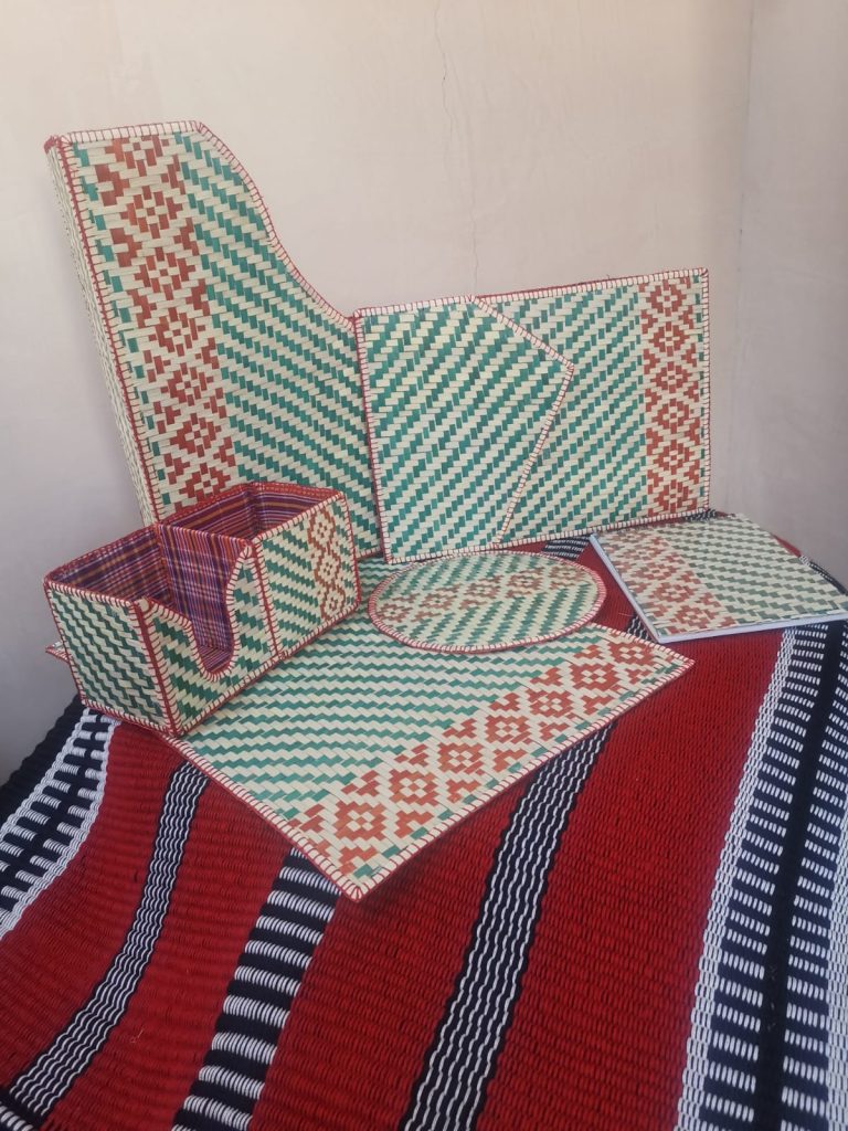 وتضيف: الخطوة التالية هي ترتيب الخوص وتقسيمه إلى قطع طويلة. بعد ذلك، نبدأ في عمل مصفوفة من الخوص تُعرف بـ”السفة”. ثم نثبت السفة باستخدام الغراء، يليها اللصق، ثم نأخذ مقاسات المنتج المراد صنعه ونقص السفة حسب الحاجة. أخيرًا، نمر بمرحلة الخياطة وتركيب المنتج النهائي، لضمان أن يكون المنتج متينًا وجميلًا.