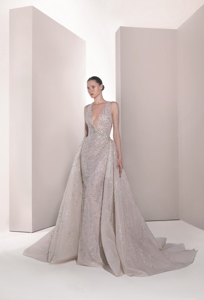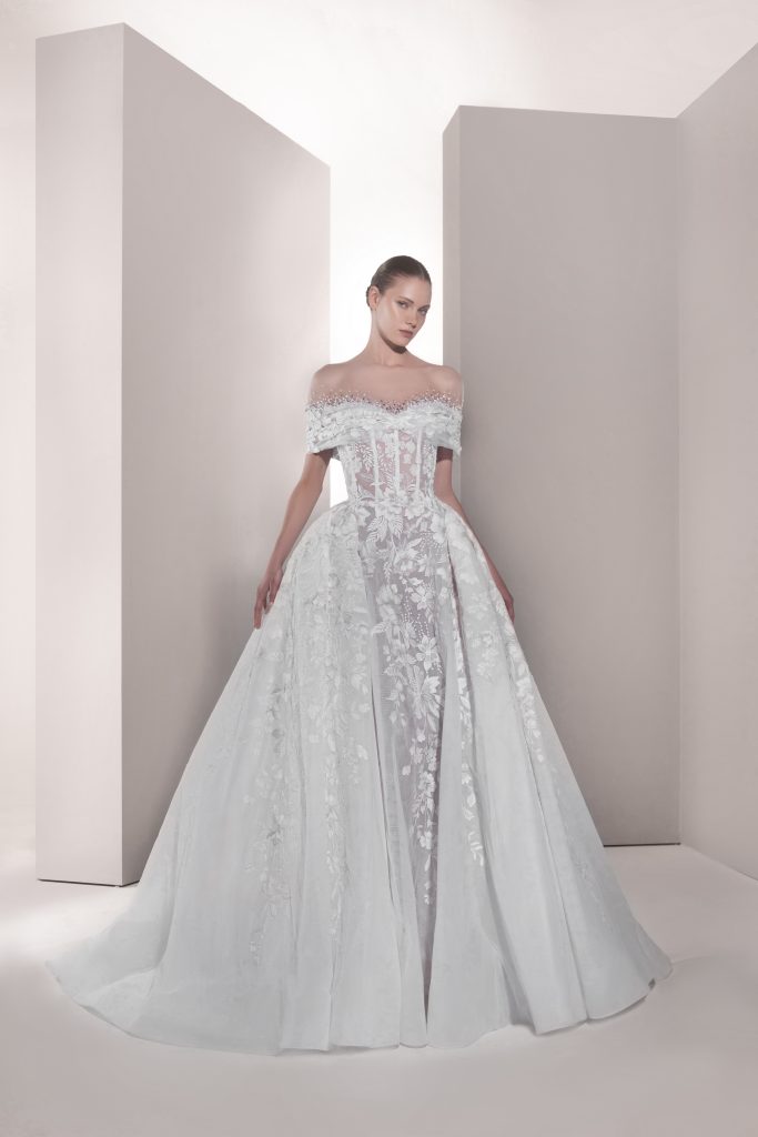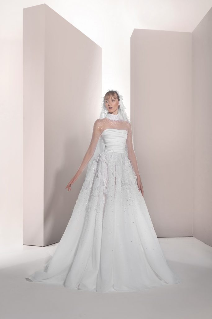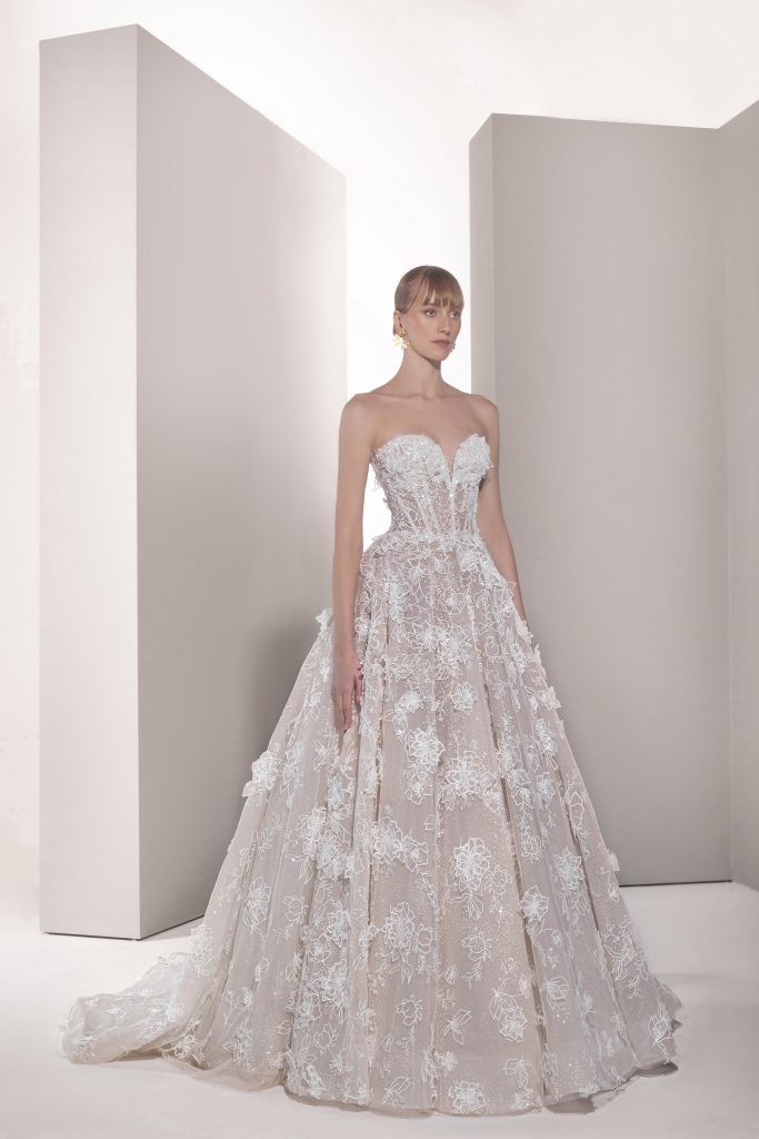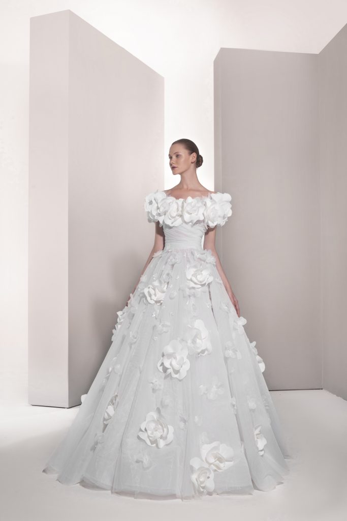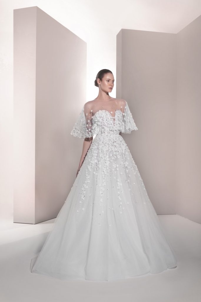 تضمنت المجموعة حوالي 30 فستاناً طويلاً بتدرجات اللون الأبيض من الناصع إلى النيود، وجمعت بين القصات الكلاسيكية والطابع العصري من خلال تطريزات متألقة وأقمشة فاخرة مثل الأورغنزا والدانتيل.