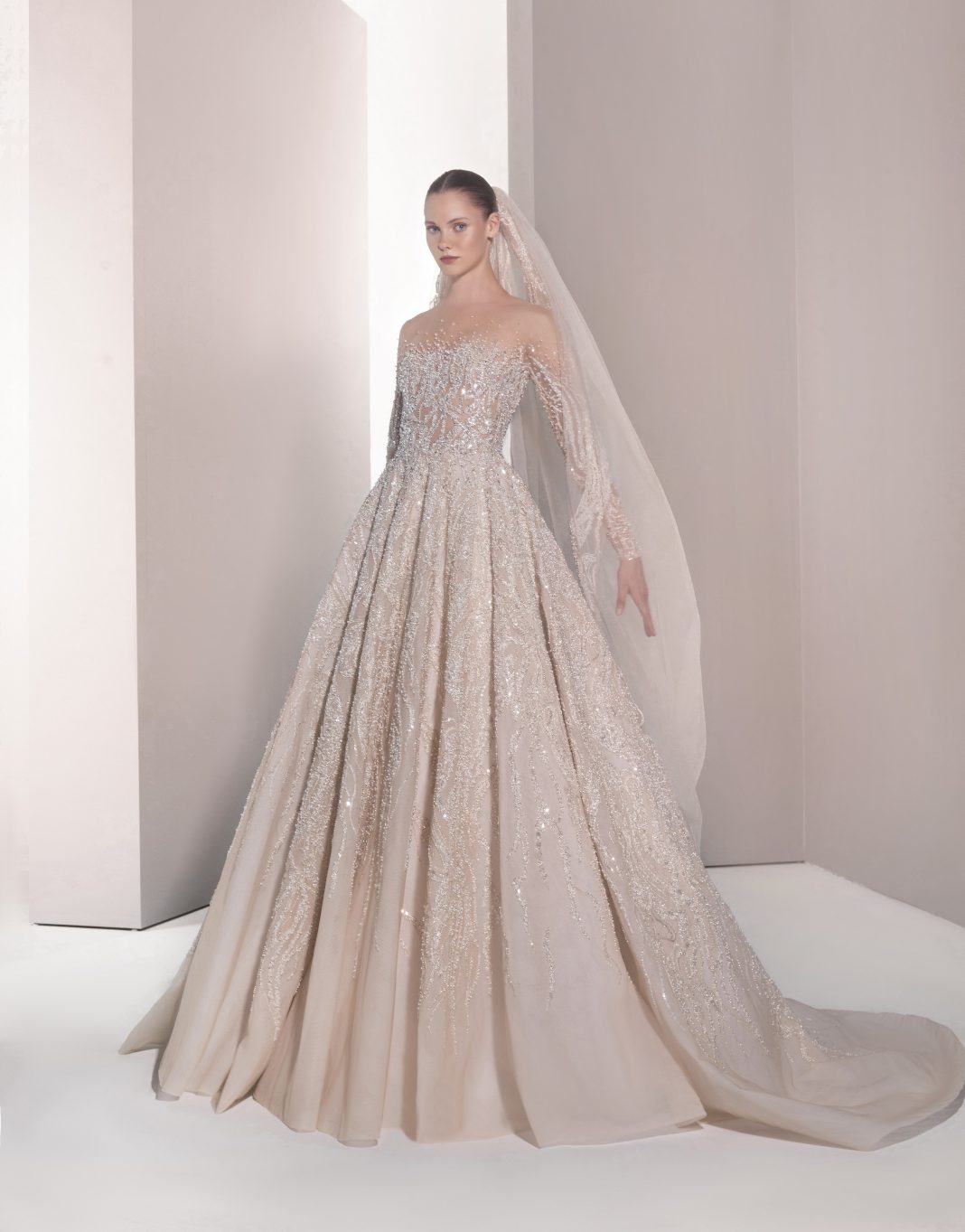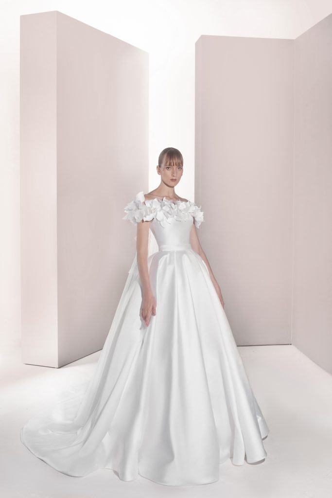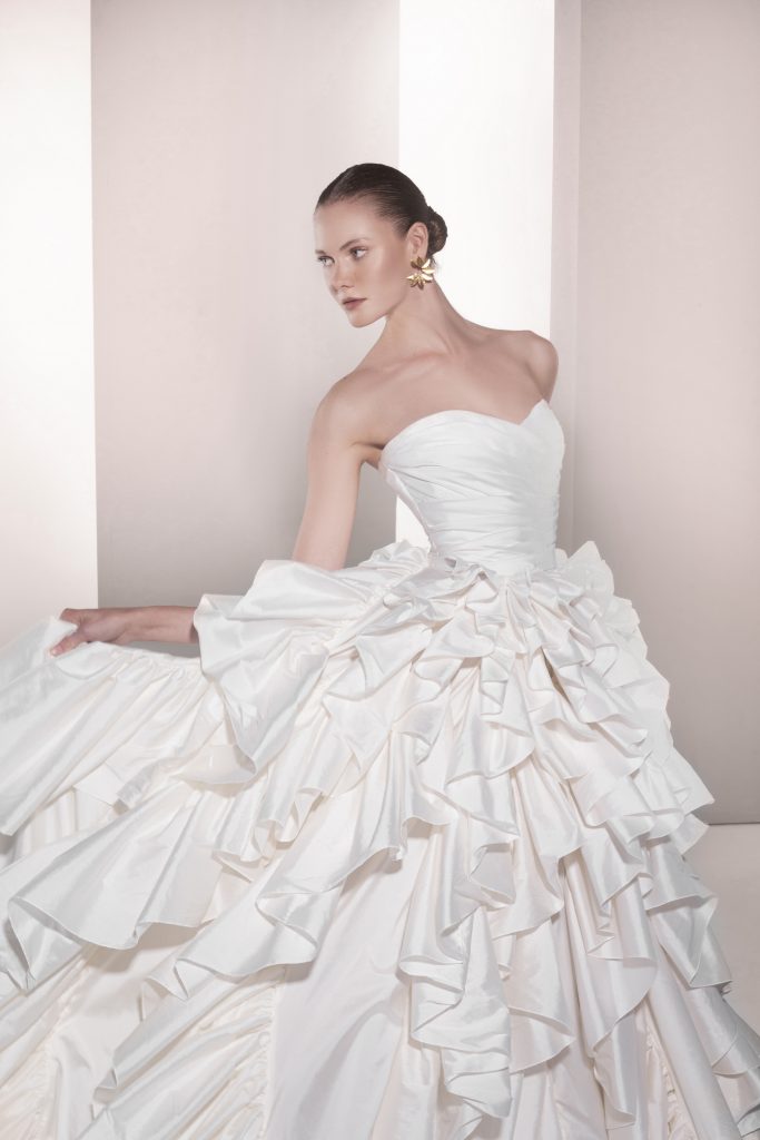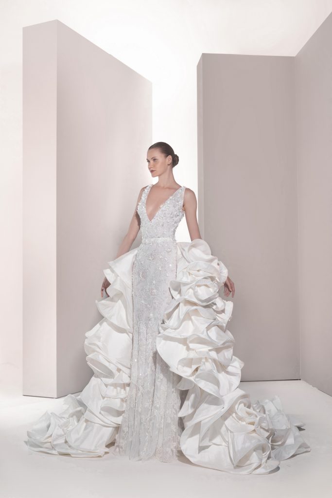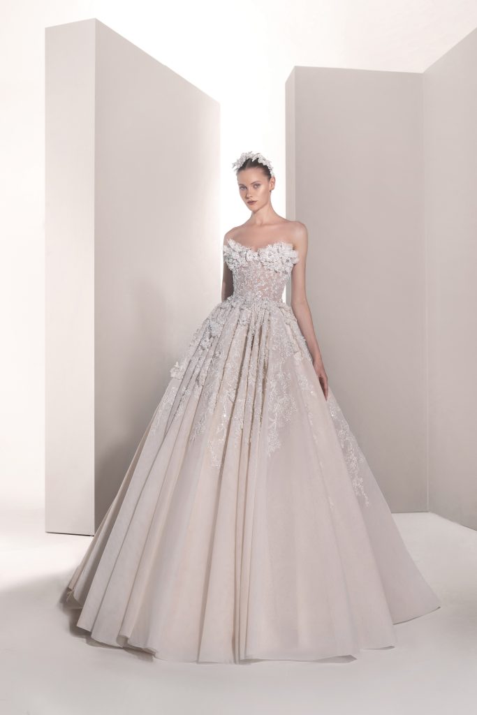 تضمنت المجموعة حوالي 30 فستاناً طويلاً بتدرجات اللون الأبيض من الناصع إلى النيود، وجمعت بين القصات الكلاسيكية والطابع العصري من خلال تطريزات متألقة وأقمشة فاخرة مثل الأورغنزا والدانتيل.