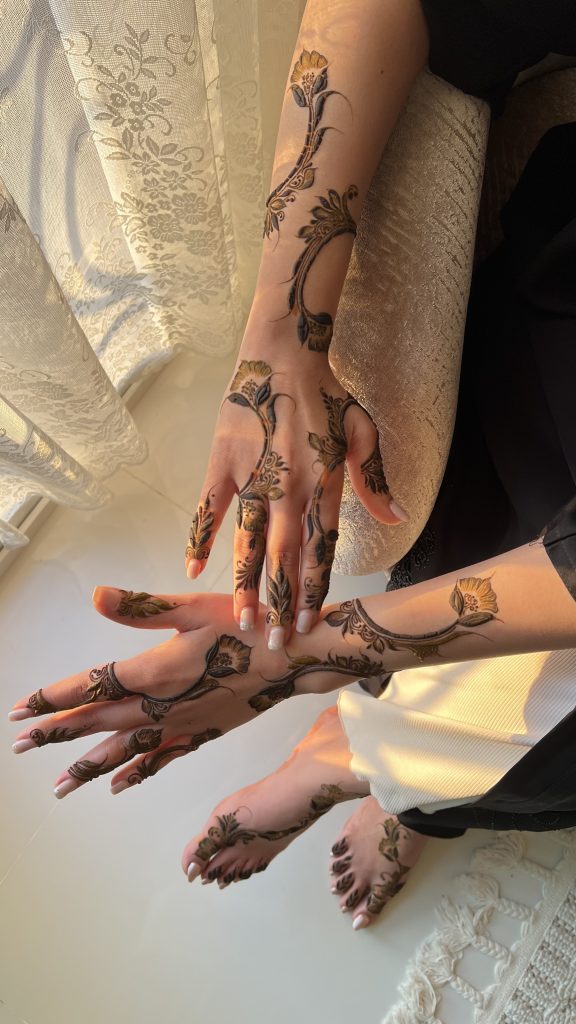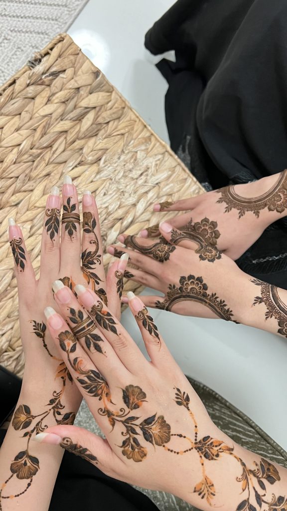 ختاماً، تقول مروة: “دائماً ما أهتم بتعاملي وأسلوبي اللطيف مع كل عروس/ زبونة وأعمل على تهيئة جو مناسب لها، ولأني أحب عملي أهتم جداً بدقّة النقوشات والتفاصيل وهذا ما يميّز (حناء ميم) وأنا ممتنة لإشادة زبائني وتقديرهم بعد تجربة خدماتي.
