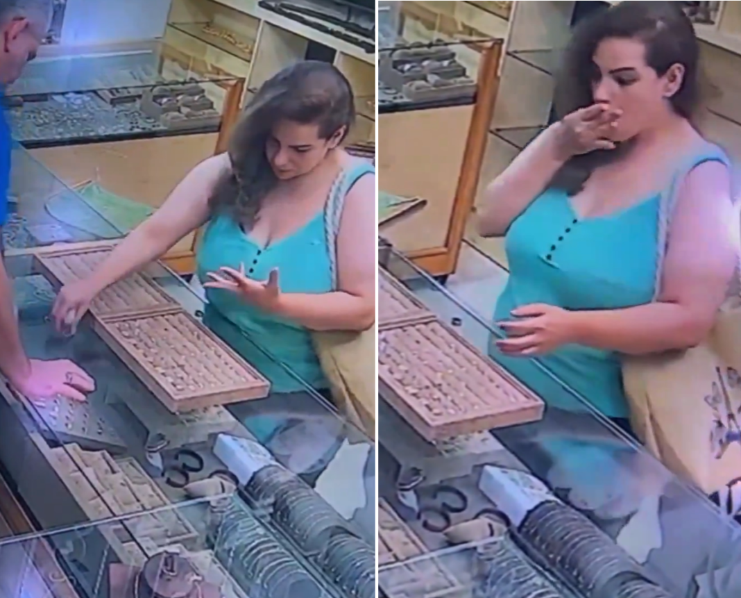 أظهر مقطع فيديو متداول على مواقع التواصل الاجتماعي لحظة قيام سيدة في لبنان بسرقة خاتم من محل مجوهرات بطريقة غريبة.