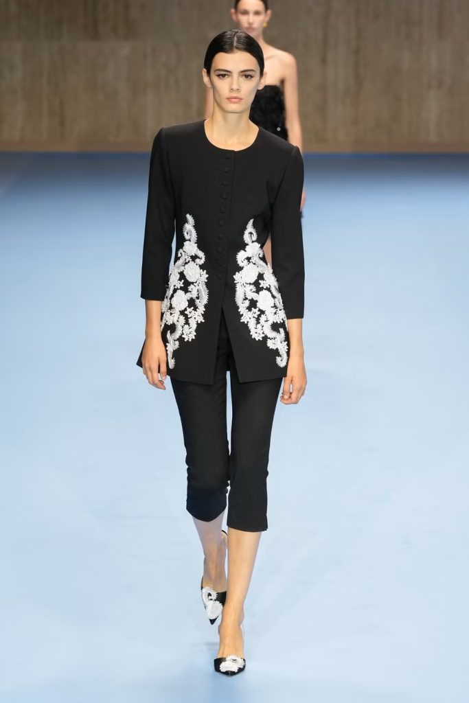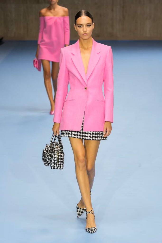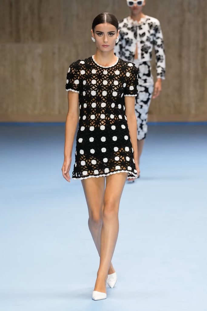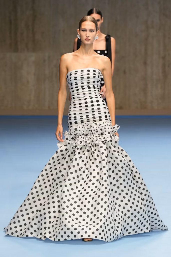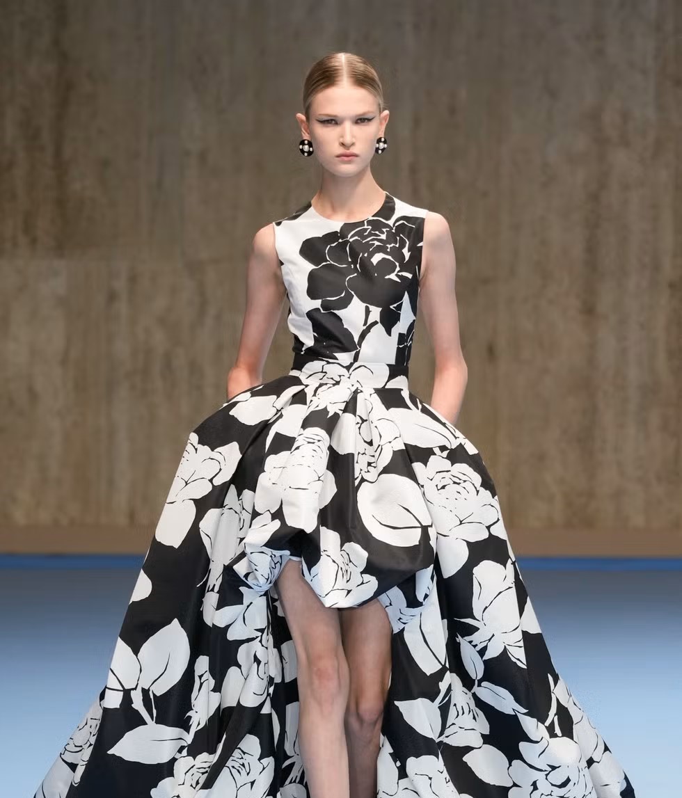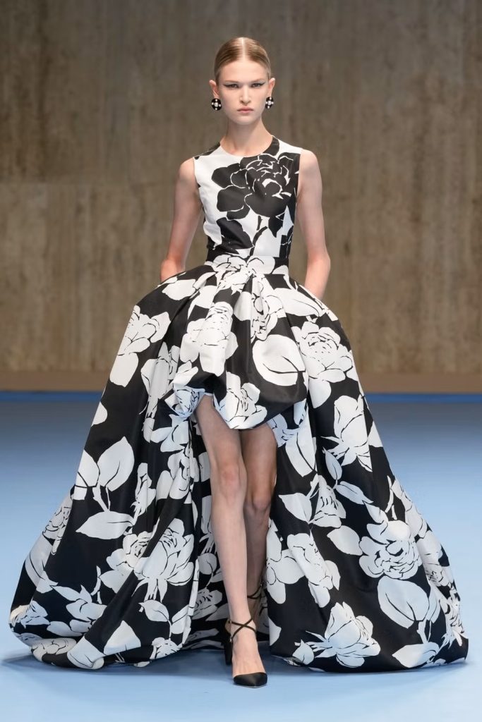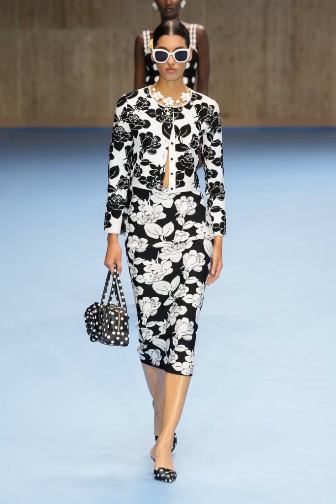 الطابع الربيعي ظهر بوضوح من خلال استخدام نقوش الأزهار الكبيرة، والتي تعتبر من الرموز الأيقونية للدار. كما تم مزجها في بعض الإطلالات مع نقاط البولكا بالأبيض والأسود بطريقة أنيقة ومتناغمة. استوحى غوردن أيضًا من ثمانينيات القرن الماضي عبر استخدام نقوش المربعات المونوكرومية التي طغت على الأزياء والإكسسوارات، ما أضفى لمسة من الماضي على الحاضر بأسلوب معاصر.