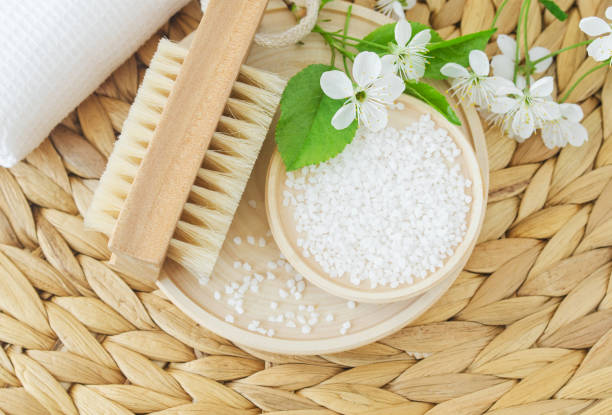 للاستحمام بأملاح إبسوم فوائد عديدة للبشرة. تعمل كبريتات المغنيسيوم على تقشير البشرة بإزالة الخلايا الميتة والمواد السامة، مما يجعل البشرة ناعمة ونضرة. كما أن أملاح إبسوم لها تأثير مهدئ على التهابات البشرة والحساسية الناتجة عن حالات مثل الإكزيما أو الصدفية. بالإضافة إلى ذلك، تساعد أملاح إبسوم على ترطيب البشرة بفضل المعادن الموجودة فيها، مما يحافظ على شباب البشرة وصحتها.