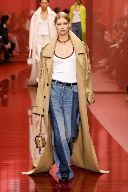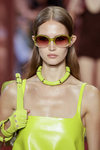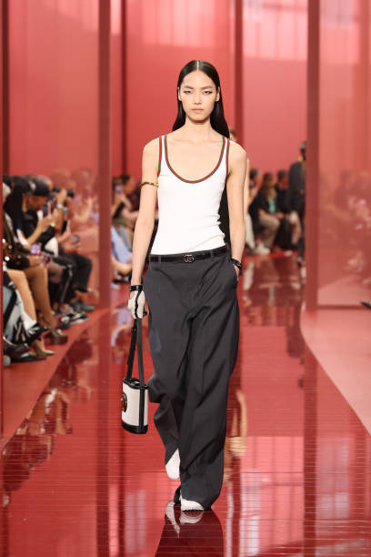 لوحة الألوان تميزت بتدرجات من الرمادي، الأخضر الحمضي، والبرتقالي، مع اعتماد شعار “GG” الأحادي والجلد اللامع، كما ظهرت تفاصيل مستوحاة من الخيزران وتصميم “حصان التثبيت”. واختتم العرض بأغنية “Non voglio mica luna”، مع رسالة تدعو إلى تقدير اللحظات الخاصة في الحياة، مما عكس روح المجموعة وطابعها الفريد.