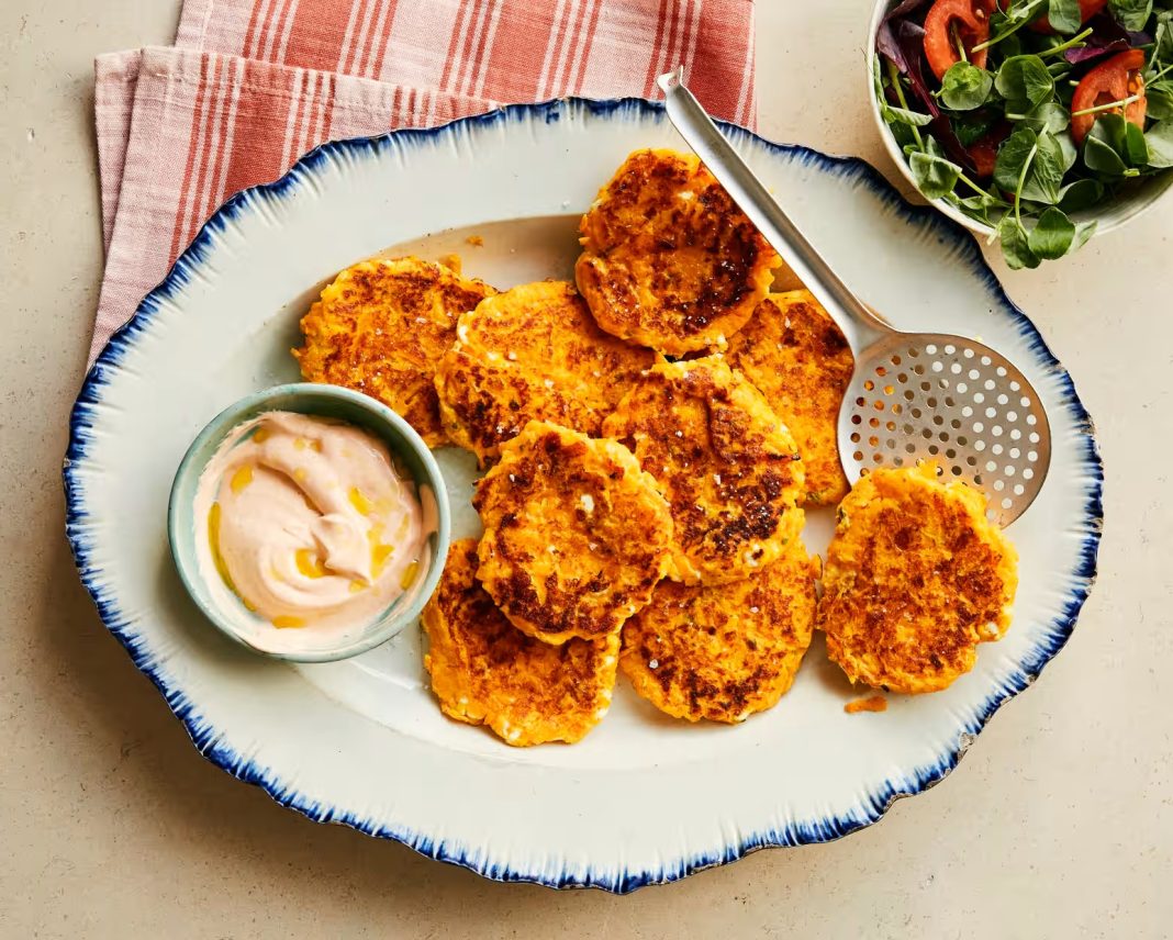 التقديم: قدمي الفطائر ساخنة مع زبادي الصلصة الحارة وخضار طازجة بجانبها، واستمتعي بعشاء شهي ومغذي!