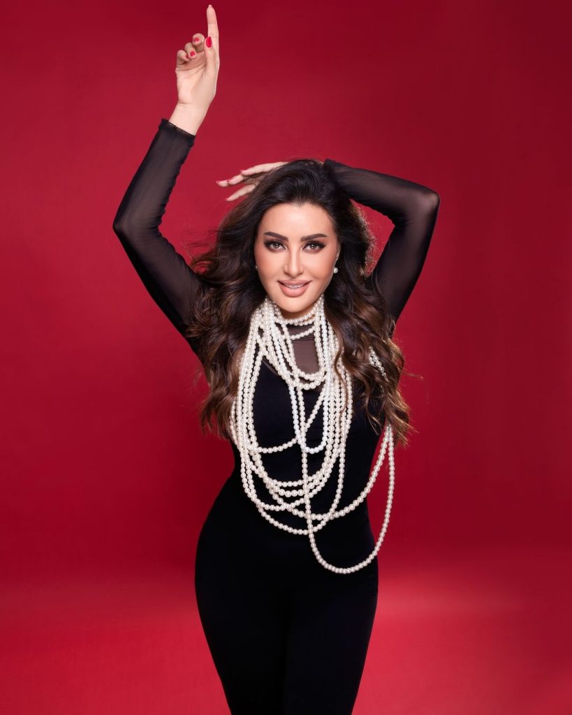 ظهرت لطيفة في الصور بإطلالة أنيقة، حيث ارتدت جمبسوت أسود ضيق بأكمام طويلة من الشيفون من تصميم سوشا، أظهر رشاقتها وخسارتها للوزن. وأكملت إطلالتها بعقد لؤلؤ طويل أضفى لمسة فخامة على مظهرها.
