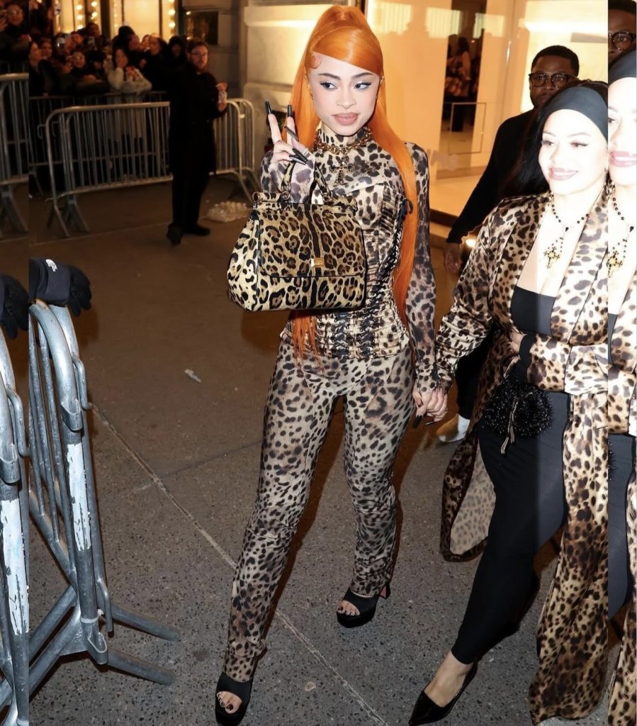 مغنية الراب أيس سبايس ظهرت ببودي كورسيه وسروال ليكرا من التعاون نفسه، وأكملت مظهرها بحقيبة يد أنيقة من Dolce & Gabbana.