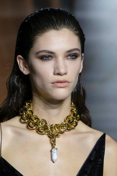 “اذهبي بشكل جريء أو لا تذهبي على الإطلاق” هو الشعار الذي تبنته دور الأزياء مثل Acne Studios وRabanne وRoberto Cavalli لموسم ربيع/صيف 2025. السلاسل كانت ضخمة وثقيلة، مما يلفت الأنظار إلى الرقبة، أحد أكثر الأجزاء جاذبية في الجسم. هذه القلائد تضيف طابعًا درامياً واحتفالياً، ويمكن تنسيقها مع الجاكيتات الجلدية، الكنزات السميكة، أو الفساتين ذات القصات الجريئة.