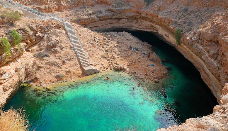 السباحة: تُعتبر المياه في قاع الحفرة من الأنشطة المفضلة لدى الزوار.