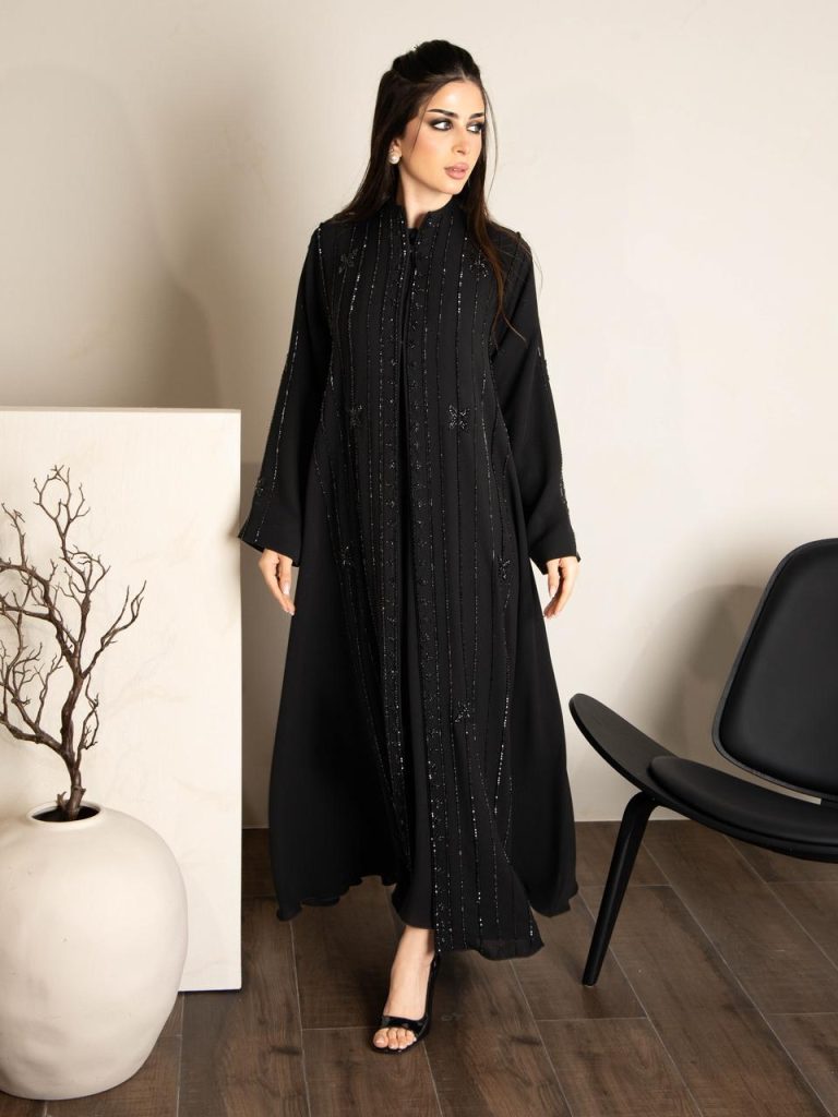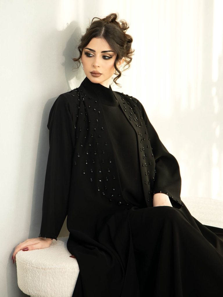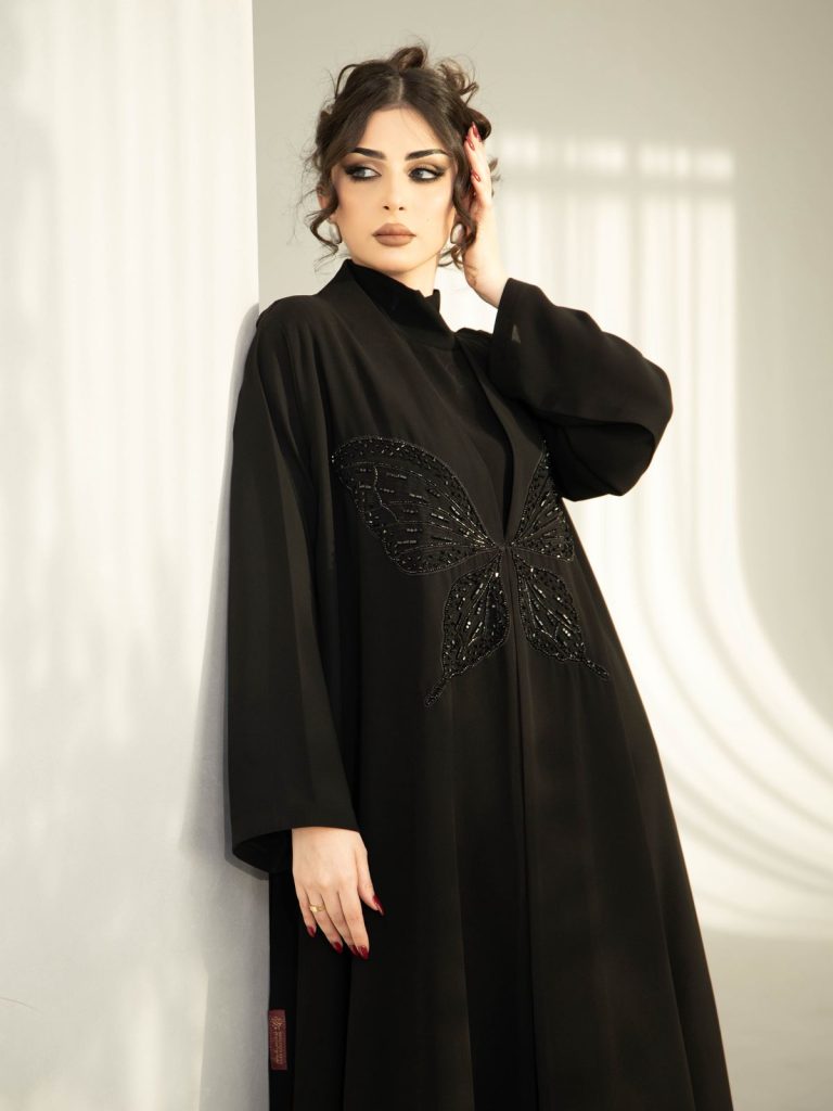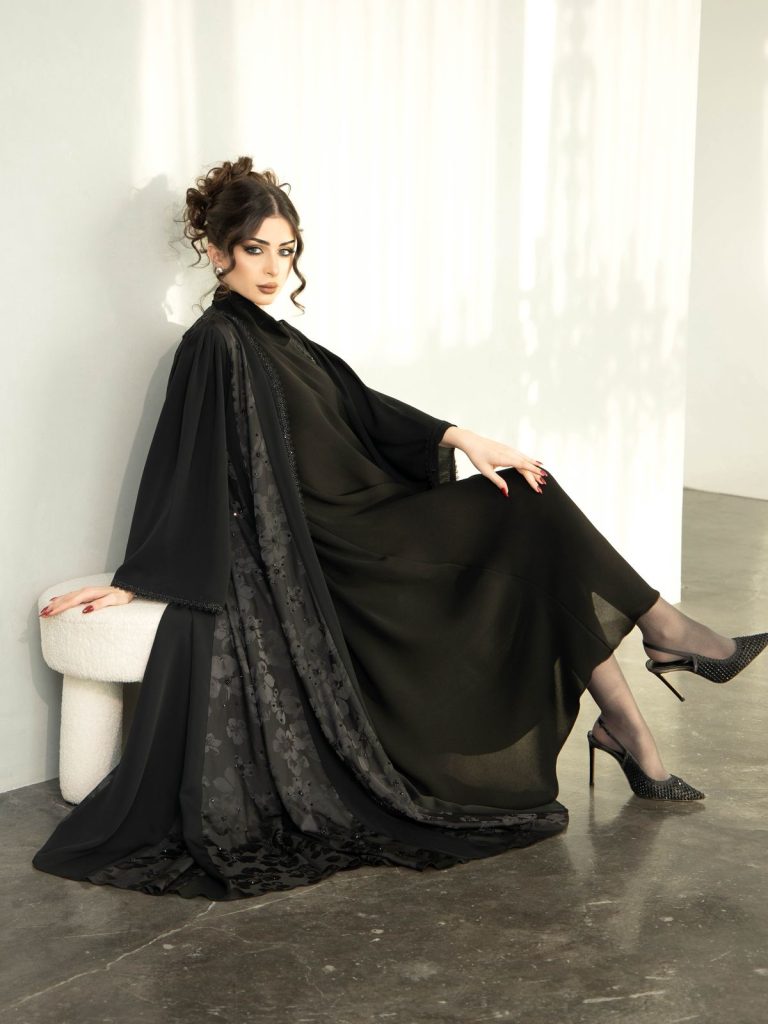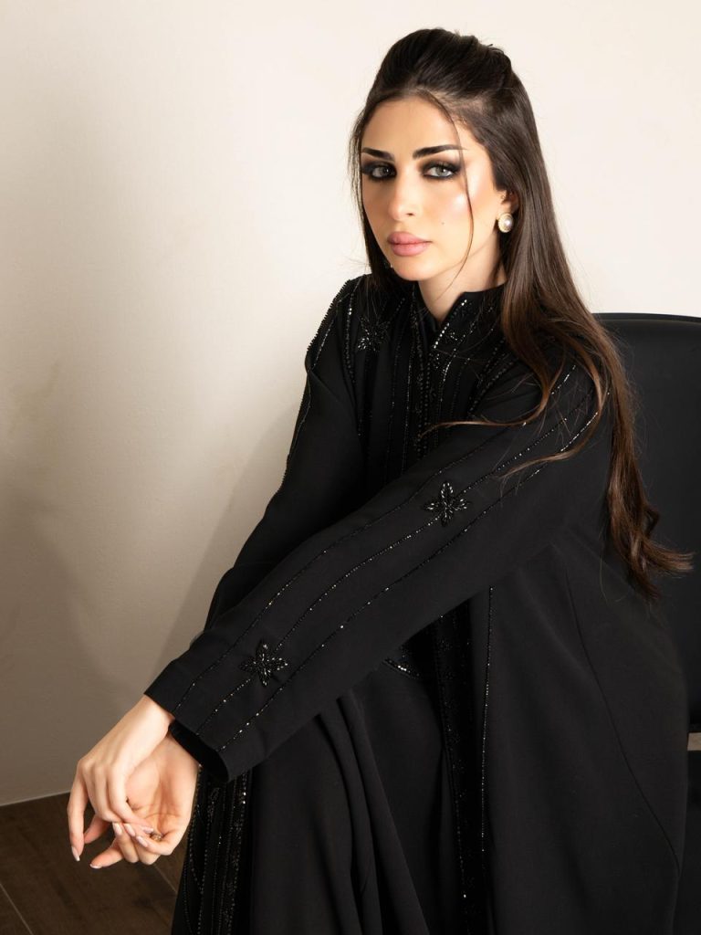 من أبرز التصاميم التي لاقت إقبالًا كبيرًا محليًا وخليجيًا هي عباية Princess التي كانت ترند عام 2023. وقد حققت هذه العباية شهرة واسعة، لم تقتصر فقط على الخليج، بل امتدت إلى مستوى عالمي، حيث شهدنا قفزة غير مسبوقة في تاريخ تأسيس البراند. ما يميزها هو القصة المميزة على شكل الكيب، بالإضافة إلى استخدامنا لقماش الكريب الياباني، مع تطريز وشك يدوي باللون الأسود، مما أضفى عليها لمسة فاخرة وأنيقة.