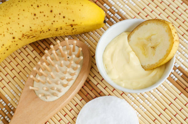الزيوت الطبيعية في الموز ترطّب فروة الرأس الجافة وتهدئ التهيّج. كما تساعد خصائصه المضادة للبكتيريا على موازنة مستوى الحموضة وتقليل القشرة.