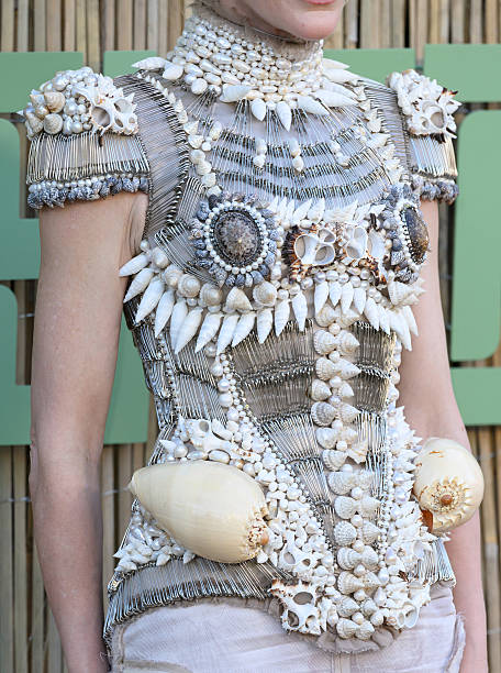 الإطلالة جاءت من مجموعة خريف 2025 للمصمّمة البريطانية التركية ديلارا فنديق أوغلو، والتي حملت عنوان “Venus from Chaos”، المستوحاة من أسطورة الإلهة فينوس. تميّزت السترة التي ارتدتها بلانشيت بكونها مصنوعة بالكامل من الأصداف البحرية ودبابيس الأمان، في تكوين فني اعتمد على عناصر مُعاد تدويرها وتفاصيل مستوحاة من أعماق الطبيعة.