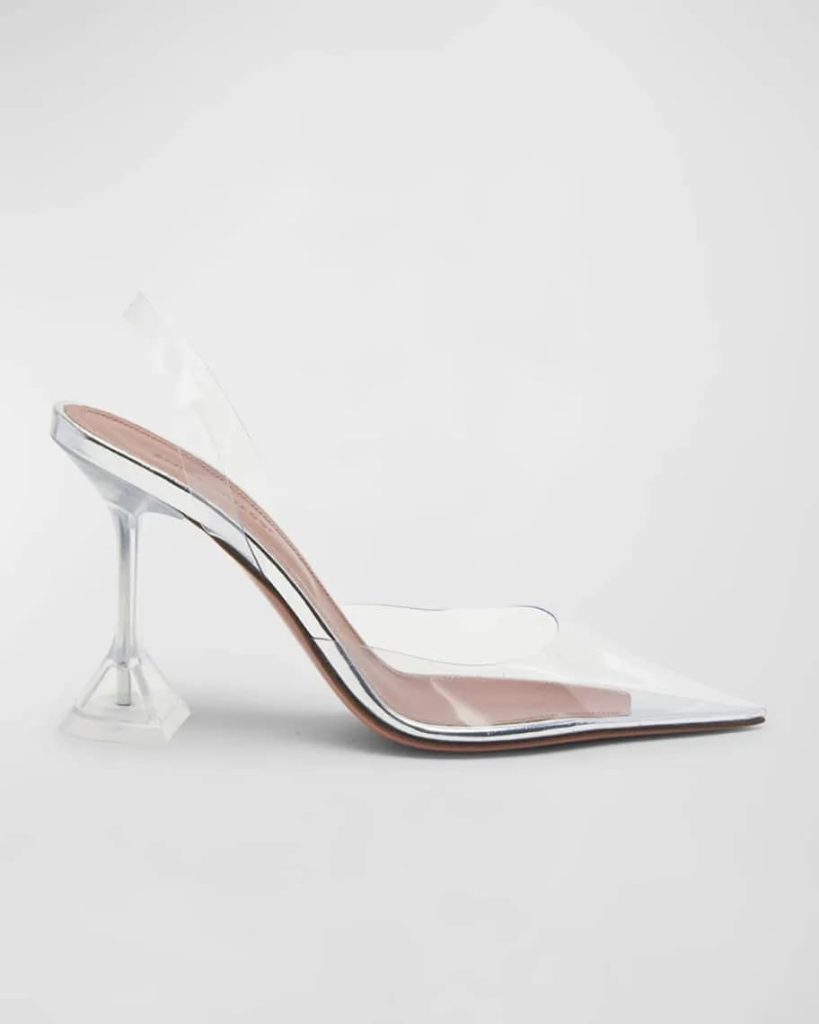 لكن ما لفت الأنظار أكثر، هو خيارها الجريء في الأحذية: كعب عالٍ بواجهة مدببة وجوانب شفافة مصنوعة من مادة الـPVC. هذه الموضة التي لمع نجمها في بدايات العقد الماضي، وتحديداً في عام 2012، كانت قد فقدت بريقها تدريجياً خلال السنوات الأخيرة. إلا أنّ أمل، بذوقها الرفيع وقدرتها على إحياء القطع الكلاسيكية بلمسة عصرية، أعادت لهذه الصيحة روحها، مؤكدة أن الأناقة لا تتقيد بالزمن.